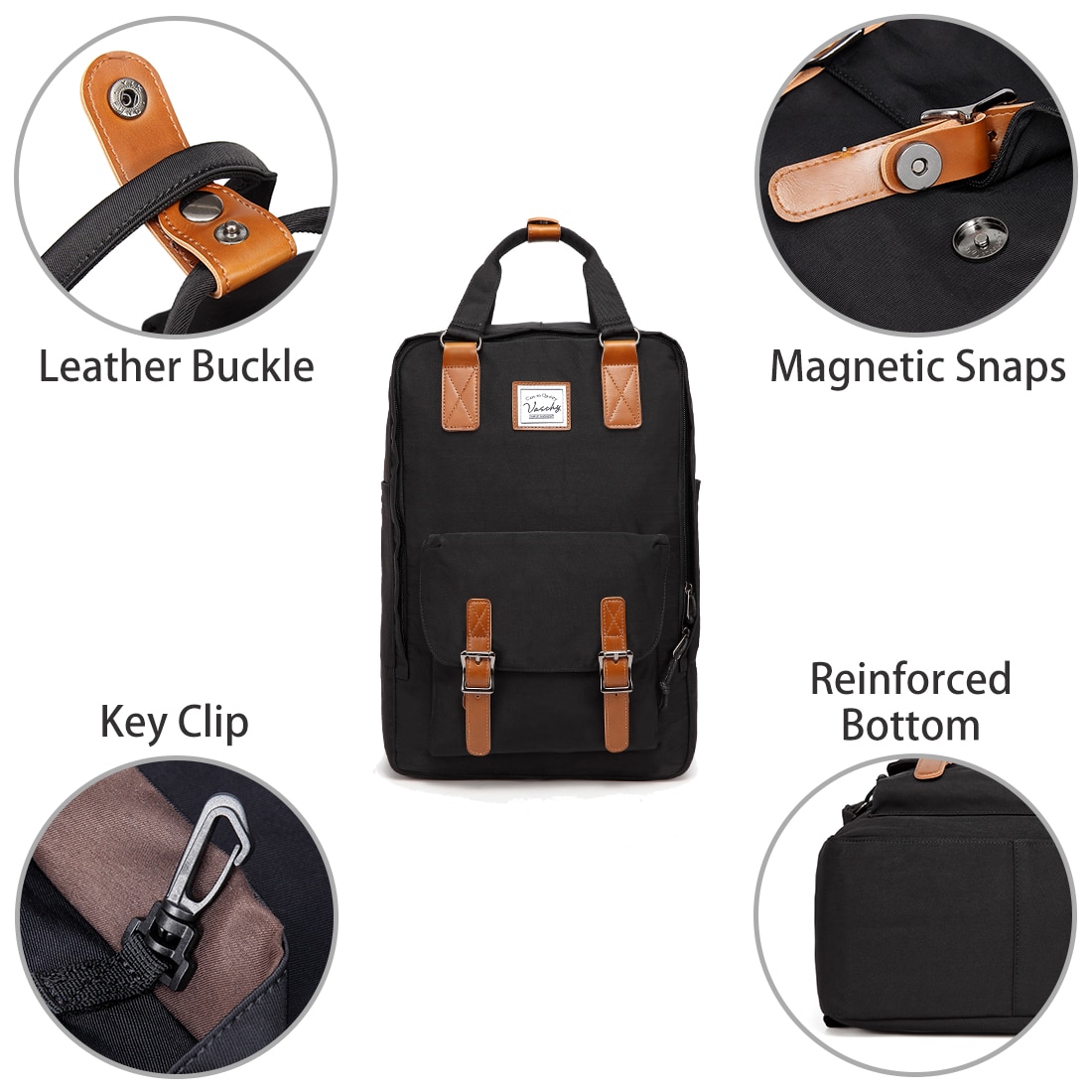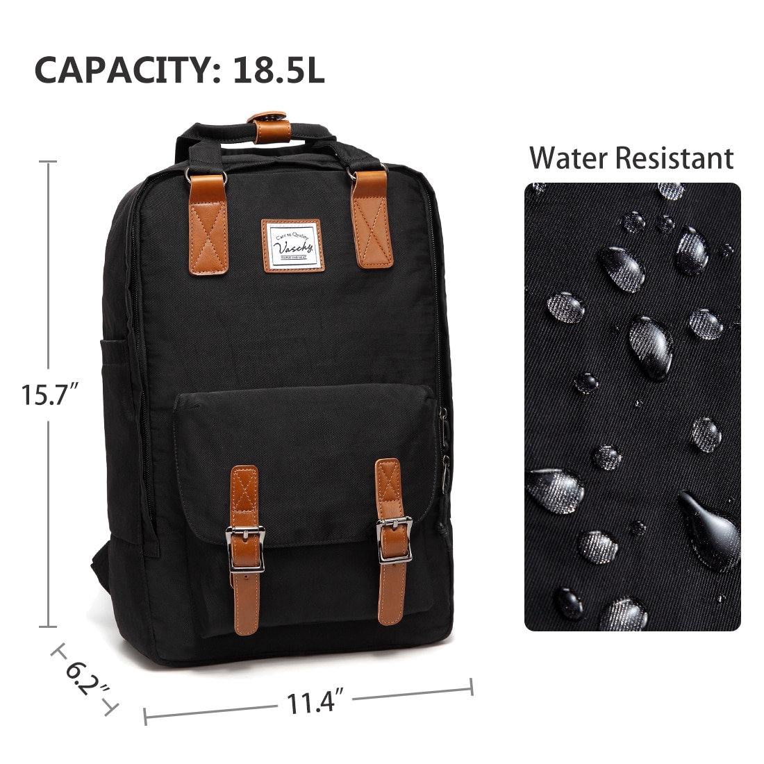 • ★VINTAGE DESIGN: The Vaschy daily casual backpack is made of high quality water resistant soft durable Vinylon fabric.The vintage design features a rectangle, streamlined shape with two top handles for hand toting and adjustable backpack straps that make it easy and comfortable to carry.There are two water bottle pockets on both sides for keeping the water bottle and umbrella.