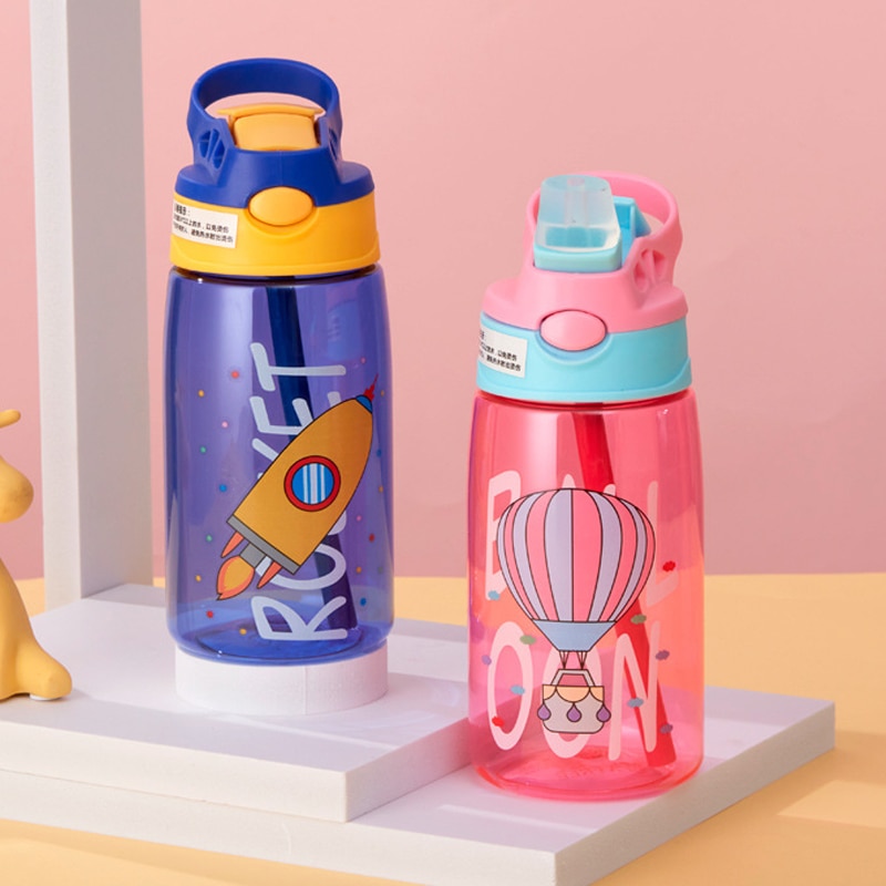 480ML Kids Water Sippy Cup Creative Cartoon Baby Feeding Cup with Straws Leakproof Water Bottle Outdoor Portable Children's Cups