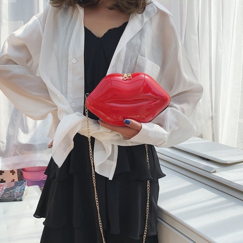 Lips Shape PVC Handbags Women Zipper Shoulder Bag Crossbody Messenger Phone Coin Bag Evening Party Clutches Bolsas Feminina Saco