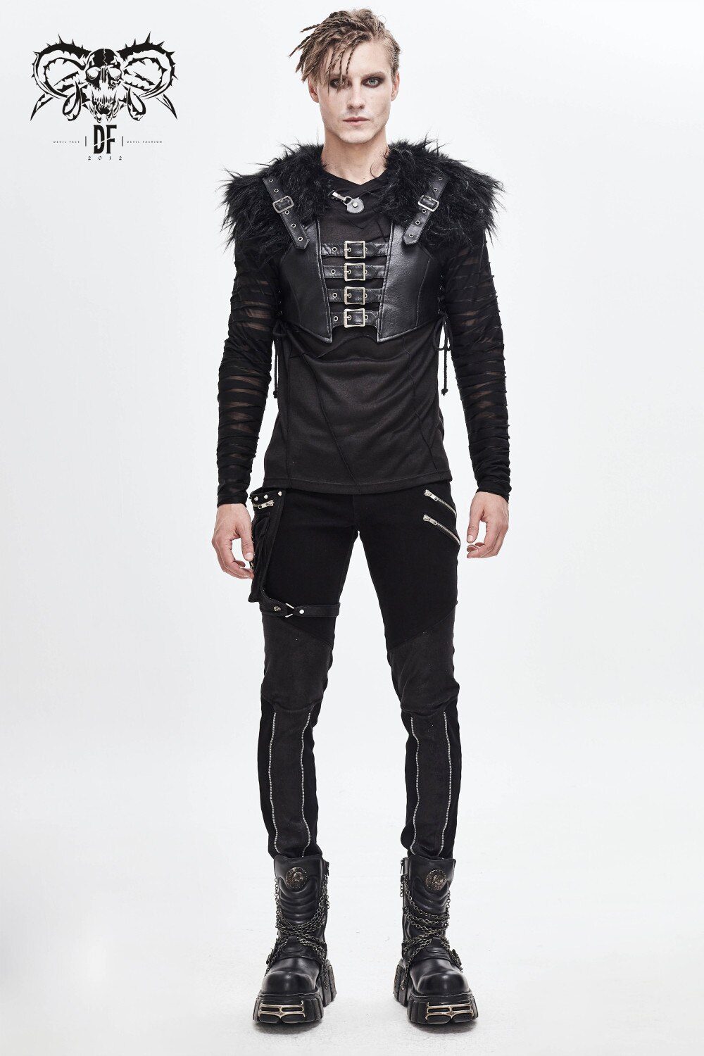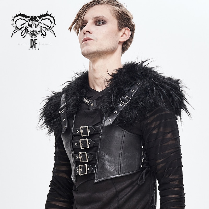 Devil Fashion Men's Punk Rock Fur Collar Vest Fashion Gorgeous Party Stage Performance Pu Waistcoat