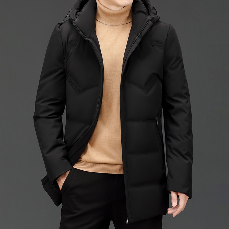 High End New Brand Casual Fashion Long 90% Mens Duck Down Jacket With Hood Black Windbreaker Puffer Coats Winter Mens Clothes