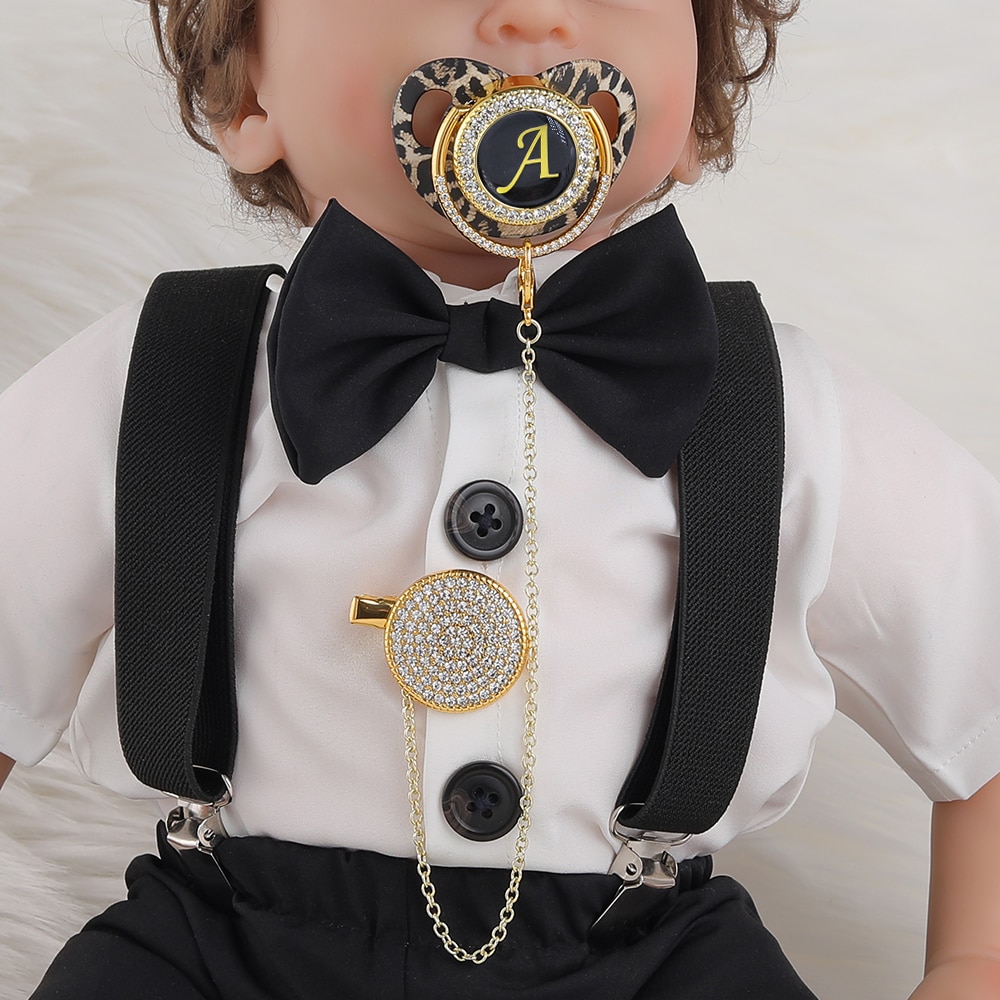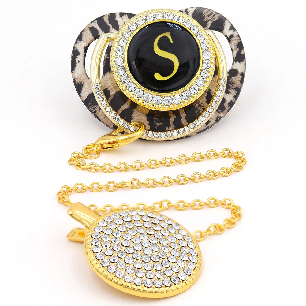 Pacifier Clip Bling Gold Pacifier Holder Leopard Case 26 Name Initials Infant Soother BPA Free For Baby Shower Gift chupetes