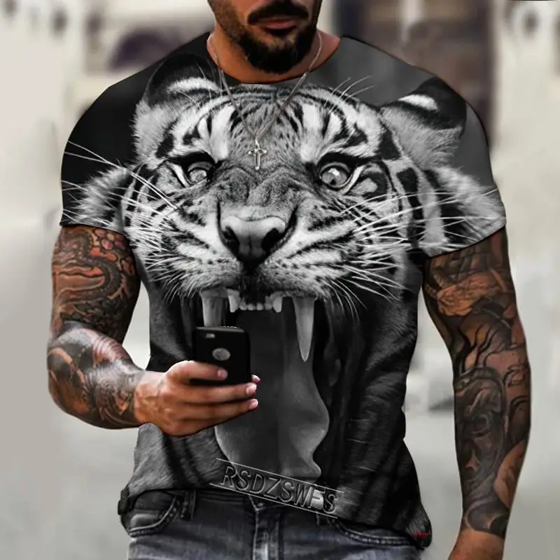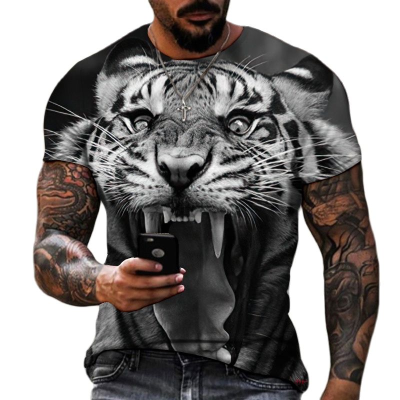 Fashion Fierce Tiger Animal 3D Printed Men's T-shirts Summer Round Neck Large Size Short Sleeve Oversized T Shirts Tops Tees 6XL