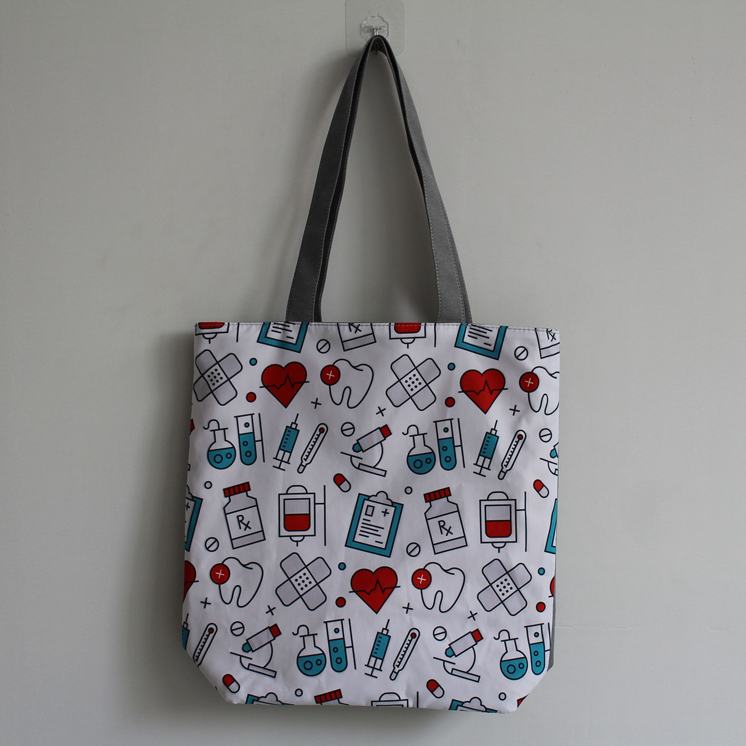 Fashion Tote Customized Cartoon Dentist Nurse Shoulder Bag Eco Reusable Shopping Bag Ladies Handbags for Women Casual Portable