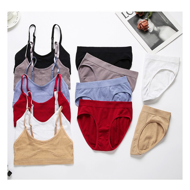 Women Seamless Tops Panties Set Soft Wireless Bra Set Comfortable Bralette Underwear Suit Girls Fitness Crop Tops