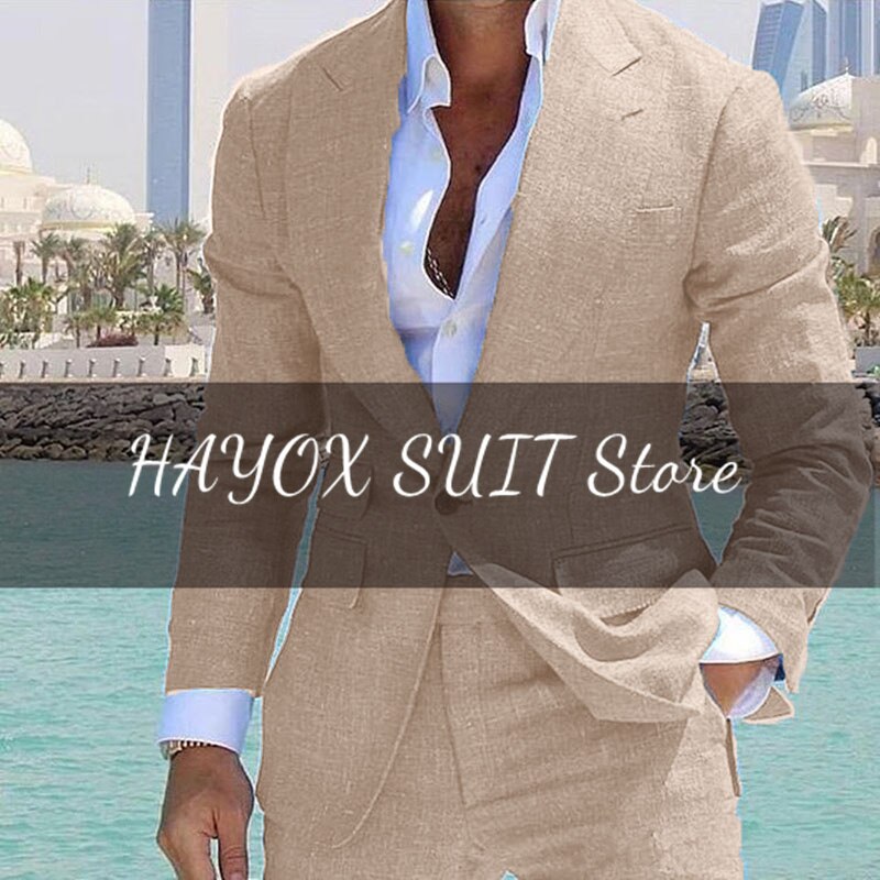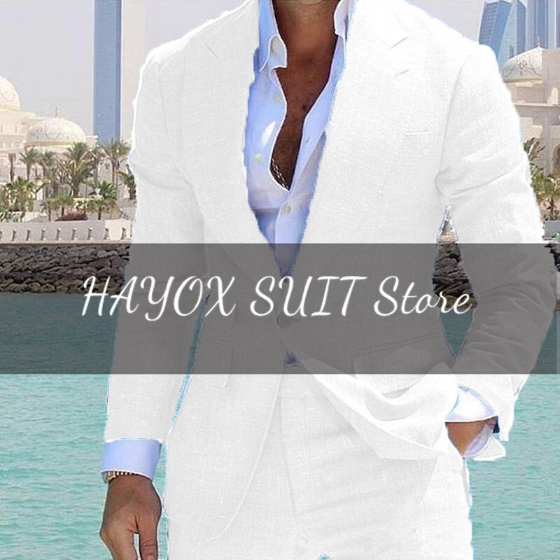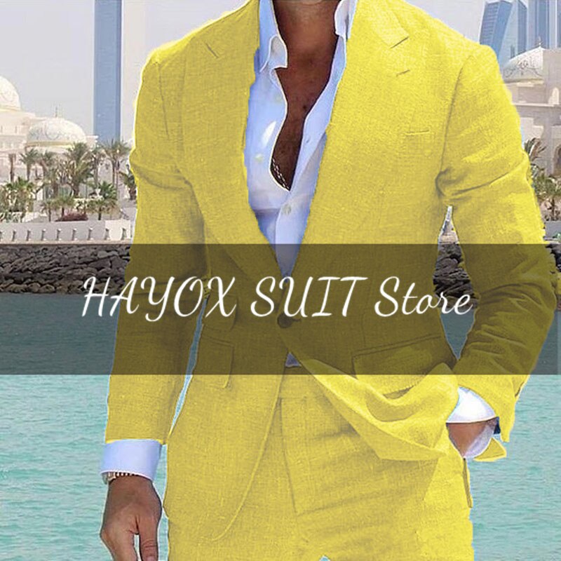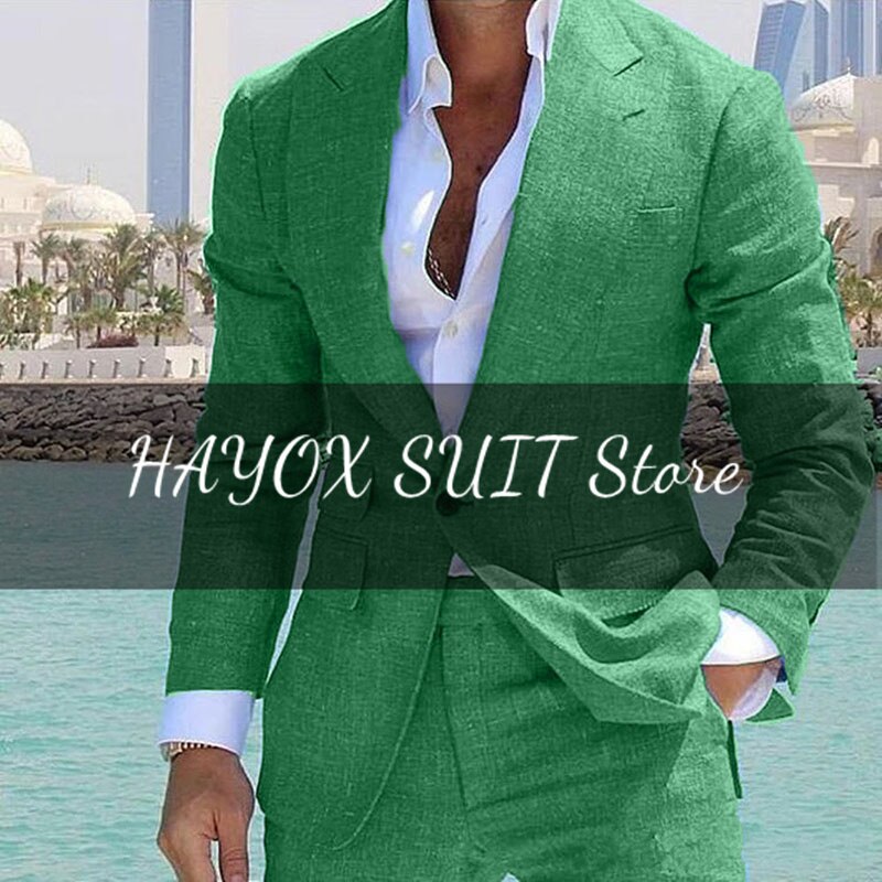 Men's Suit Linen Tip Lapel One Button Formal Groom Groomsmen Dress Jacket Pants Blazer Set Tuxedo