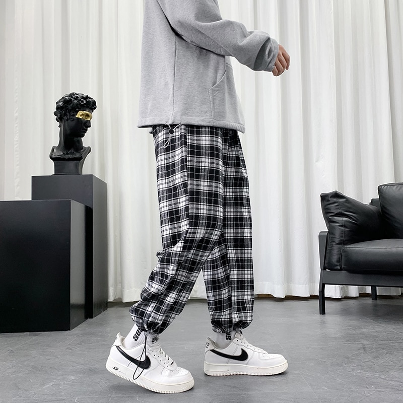Summer Lightweight Plaid Pants Men Hip Hop Oversized Casual Pants Korean Harem Sweatpants Harajuku Fashion Streetwear Jogger Men