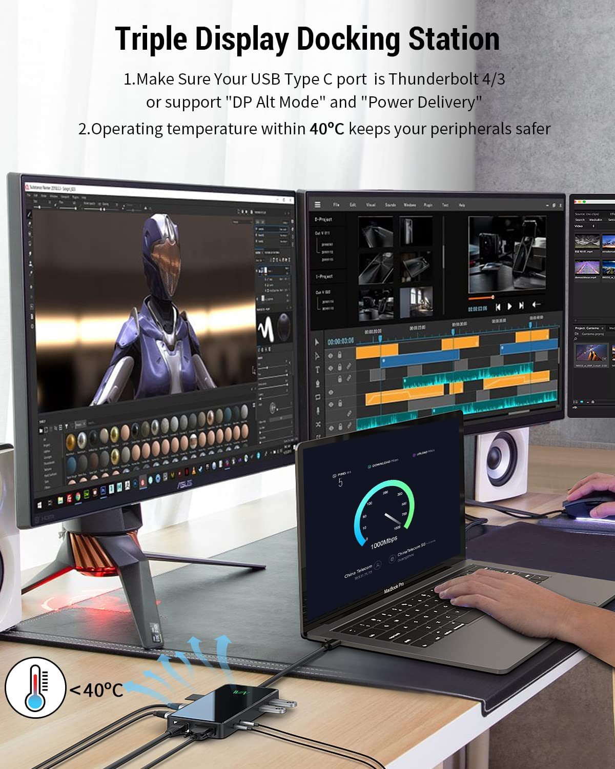 - Work with Any USB-C Laptop: This universal docking station work with the laptop with USB4,Thunderbolt 4/3, USB C port that support “DP Alt Mode”. Compatible with the multi-system: Windows 10 above,Mac 10.0 above,Ubuntu, Chrome os