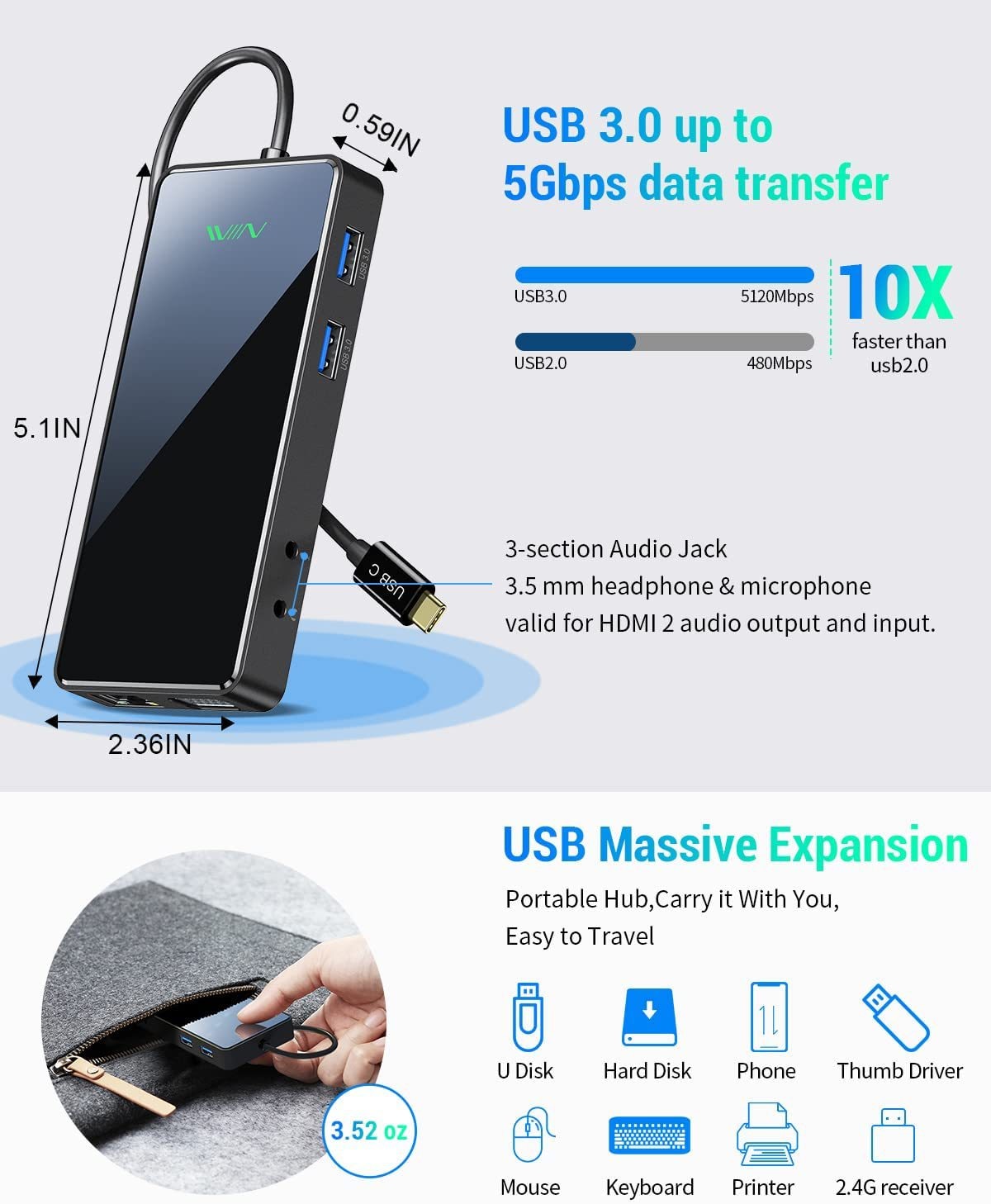 - 11 IN 1 Intelligent Docking Station: Expand one port to connect more.IVIIN USB C Docking Station features a VGA and 2 HDMI,2 USB 3.0, 100W PD, 3.5mm audio ports,sd/tf card reader.Compared with traditional bulky docking station,our laptop docking station perfectly achieve the professional