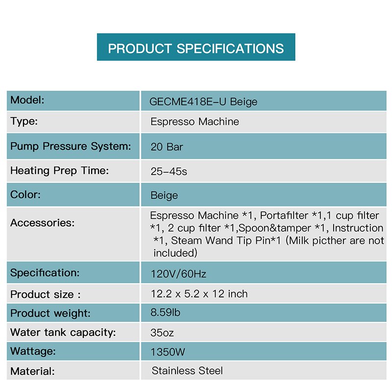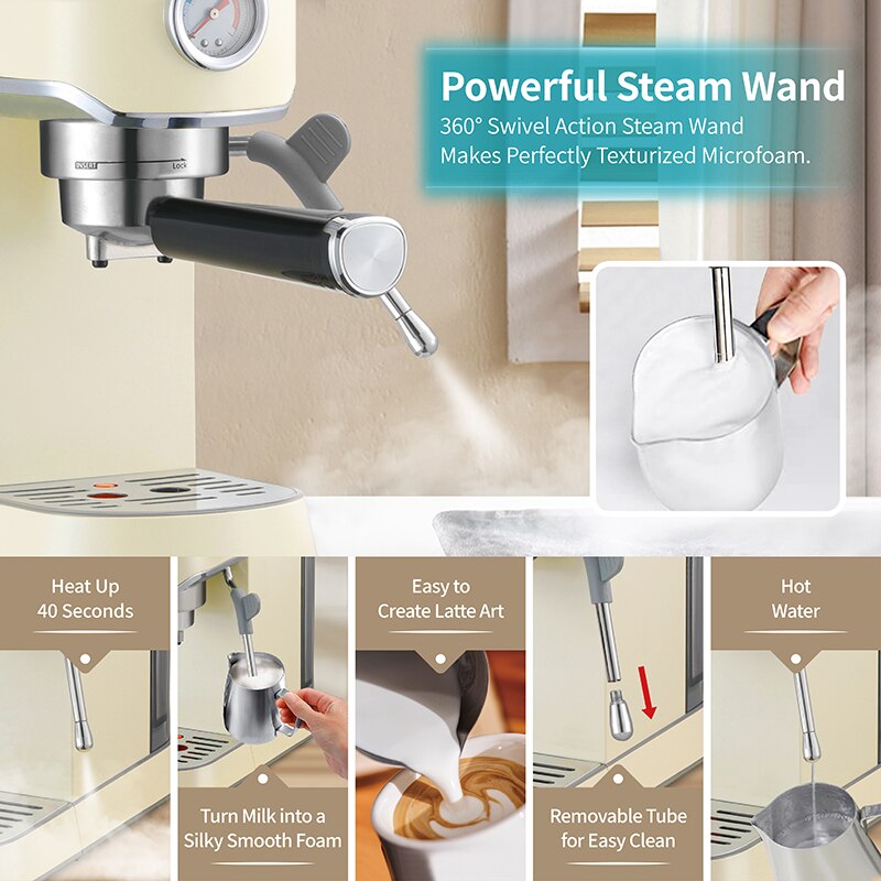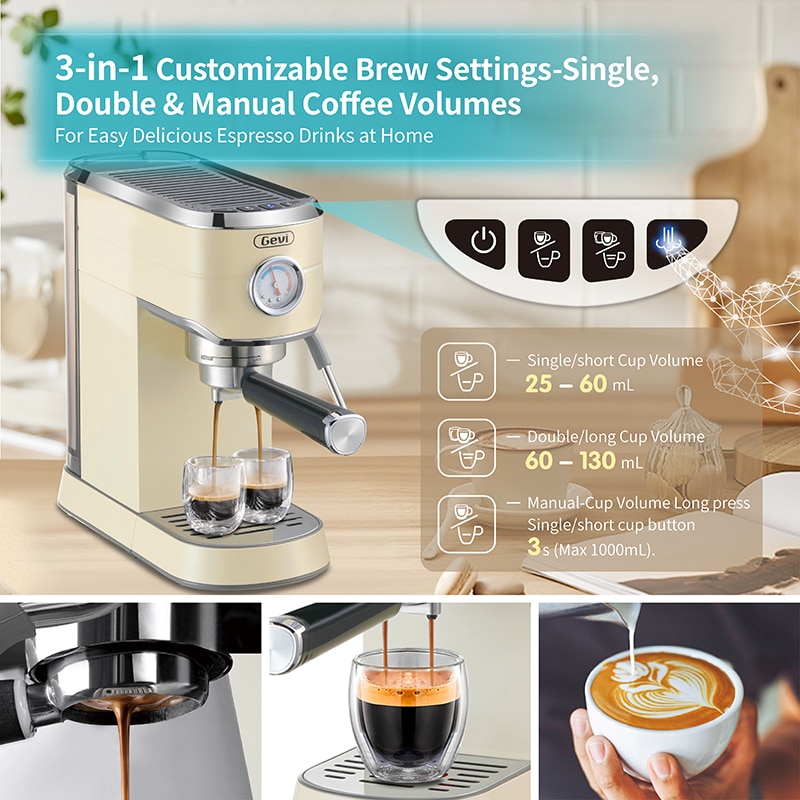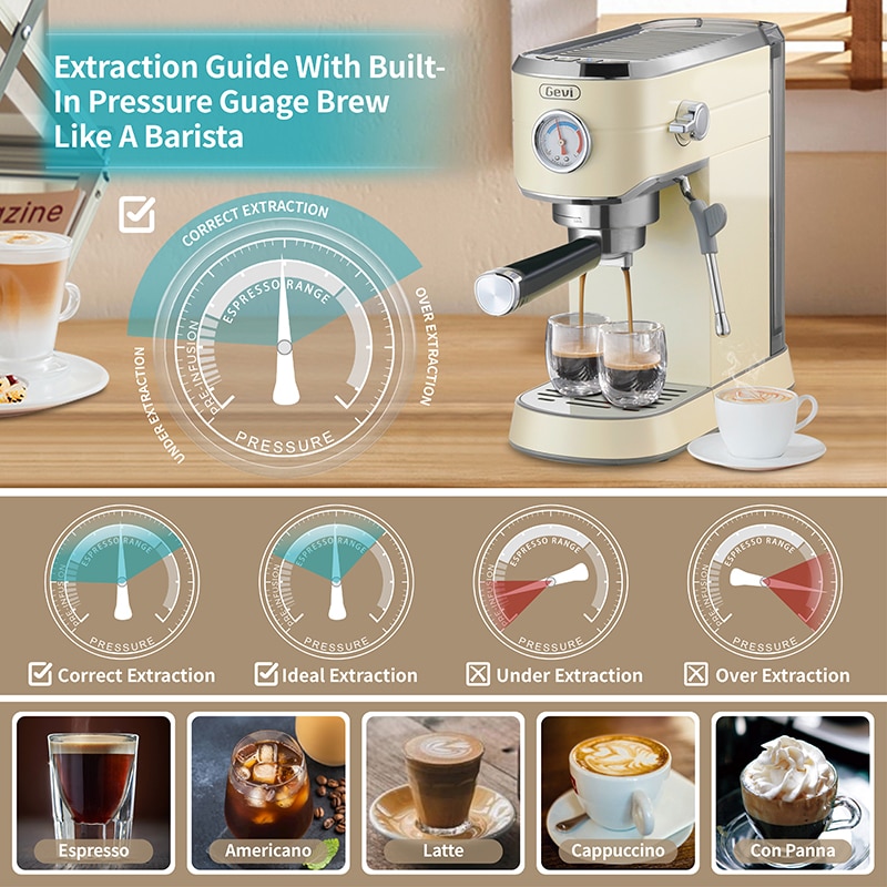 Gevi Espresso Coffee Machine 20 Bar Compact Professional with Milk Frother/Steam Wand for Latte and Cappuccino GECME418E-U Beige