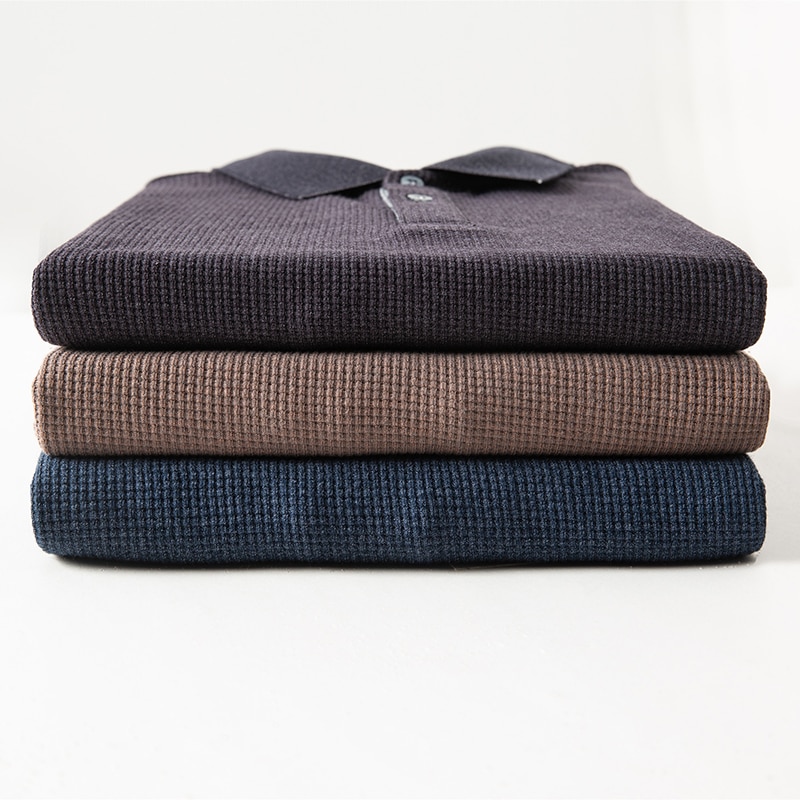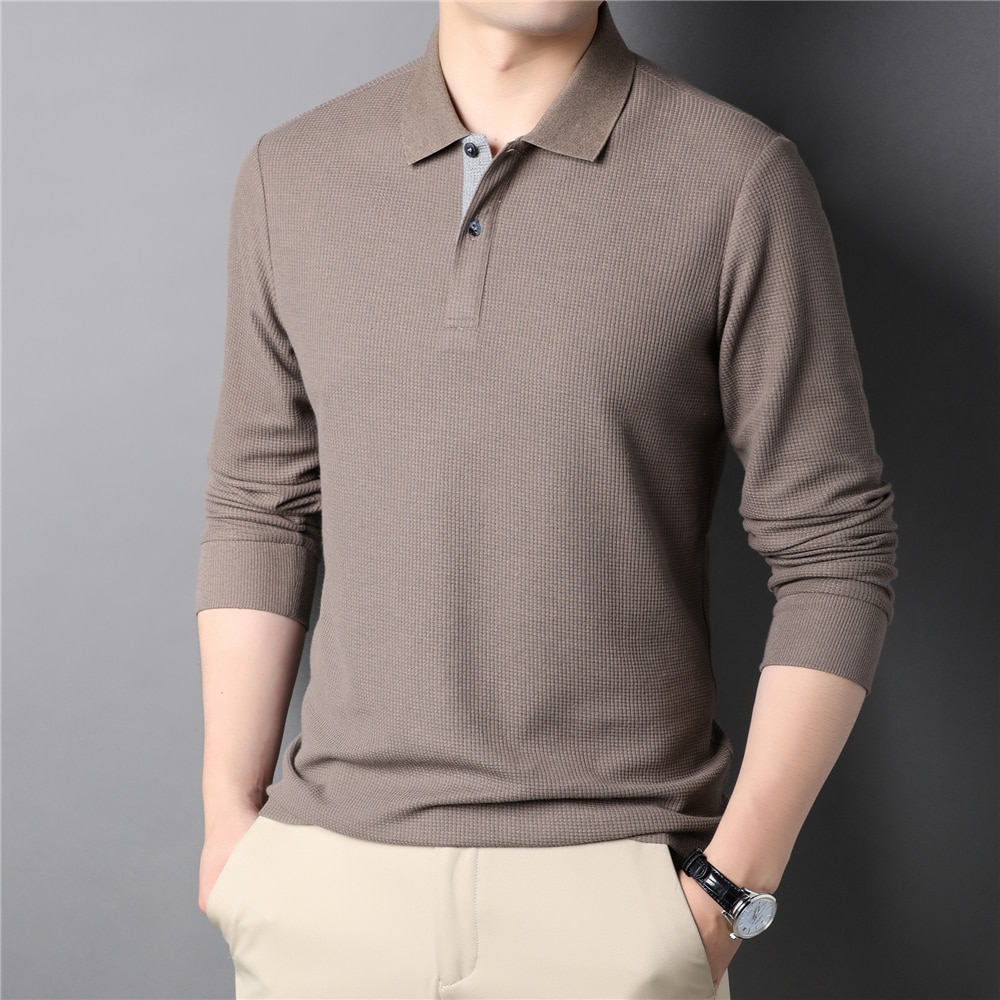 COODRONY Brand Men's Polo-Shirt Waffle Pattern Long Sleeve T-Shirt Men Clothing Soft Cotton Business Casual T Shirts Homme Z5108