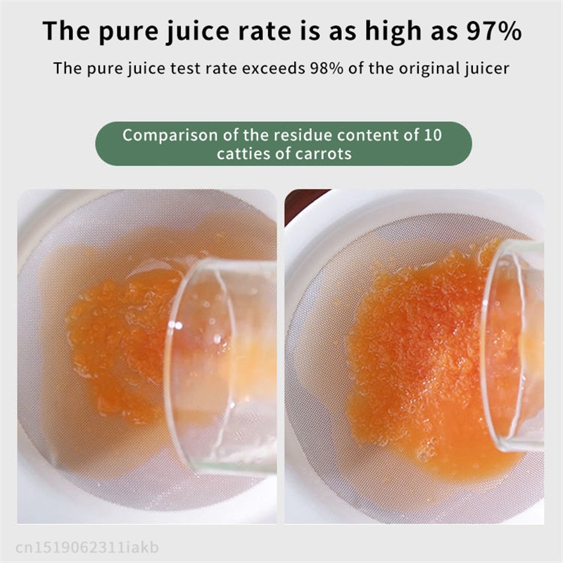 *The juice yield rate is as high as 97% using the carrot residue method, surpassing 98% of traditional juicers.