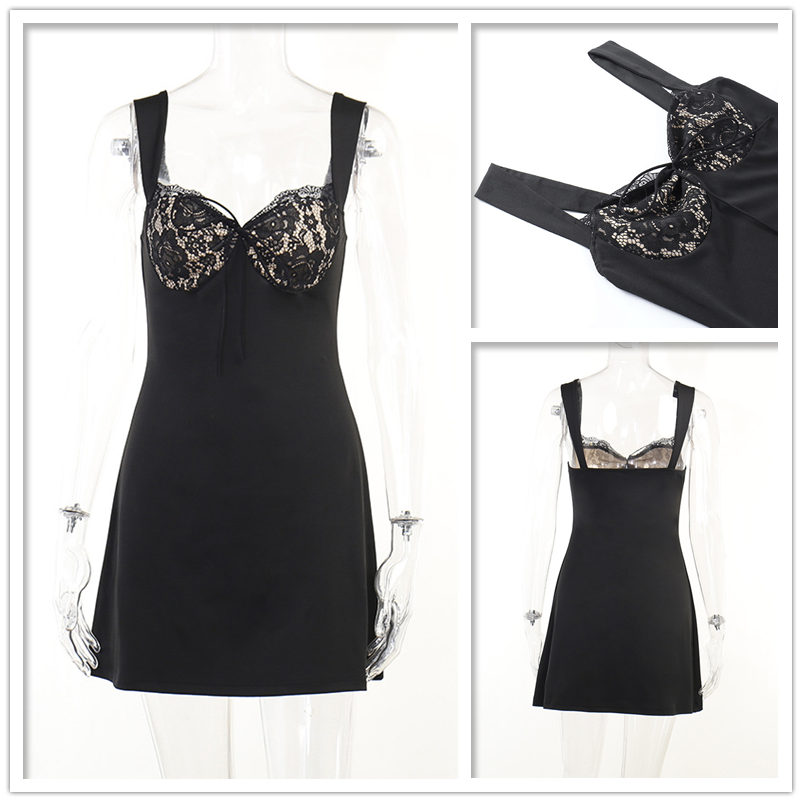 Townlike Lace Splicing Spaghetti Strap Sexy Club Party Dresses Women Summer Dress 2022 Backless Strapless Mini A-line Dress