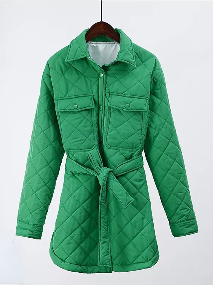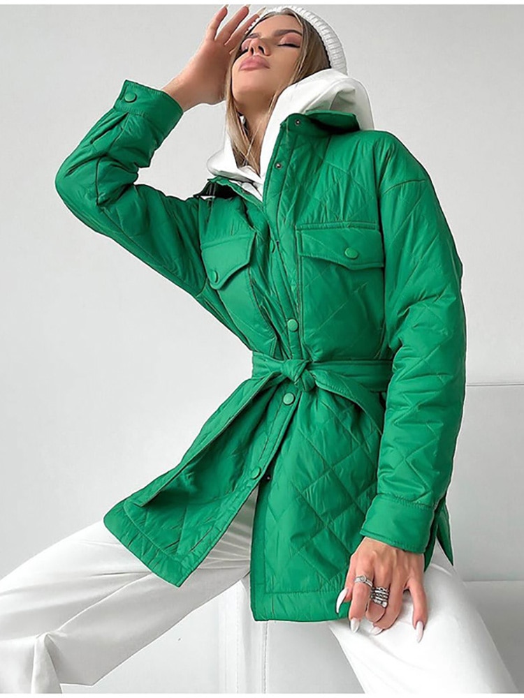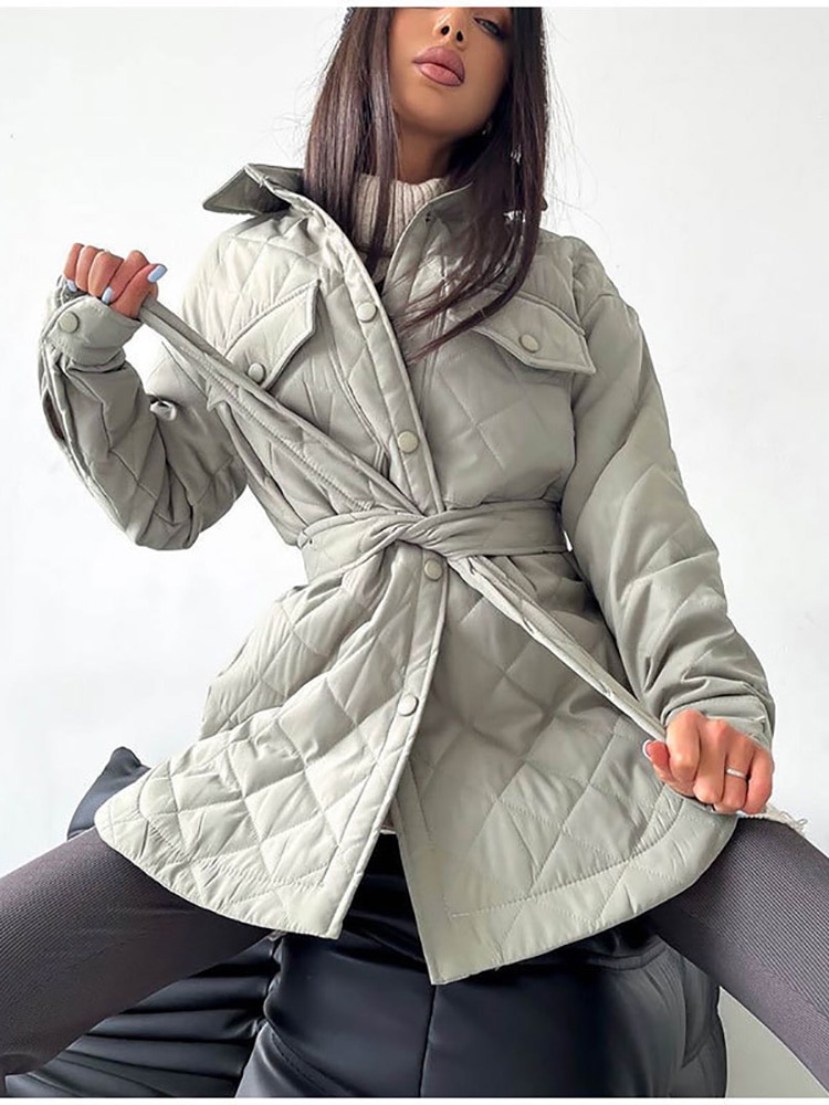 Women's Winter Padded Jacket Fashion Warm Loose Casual Coats Lapel Single-breasted Outwear Ladies Elegant Quilted Jackets Belt