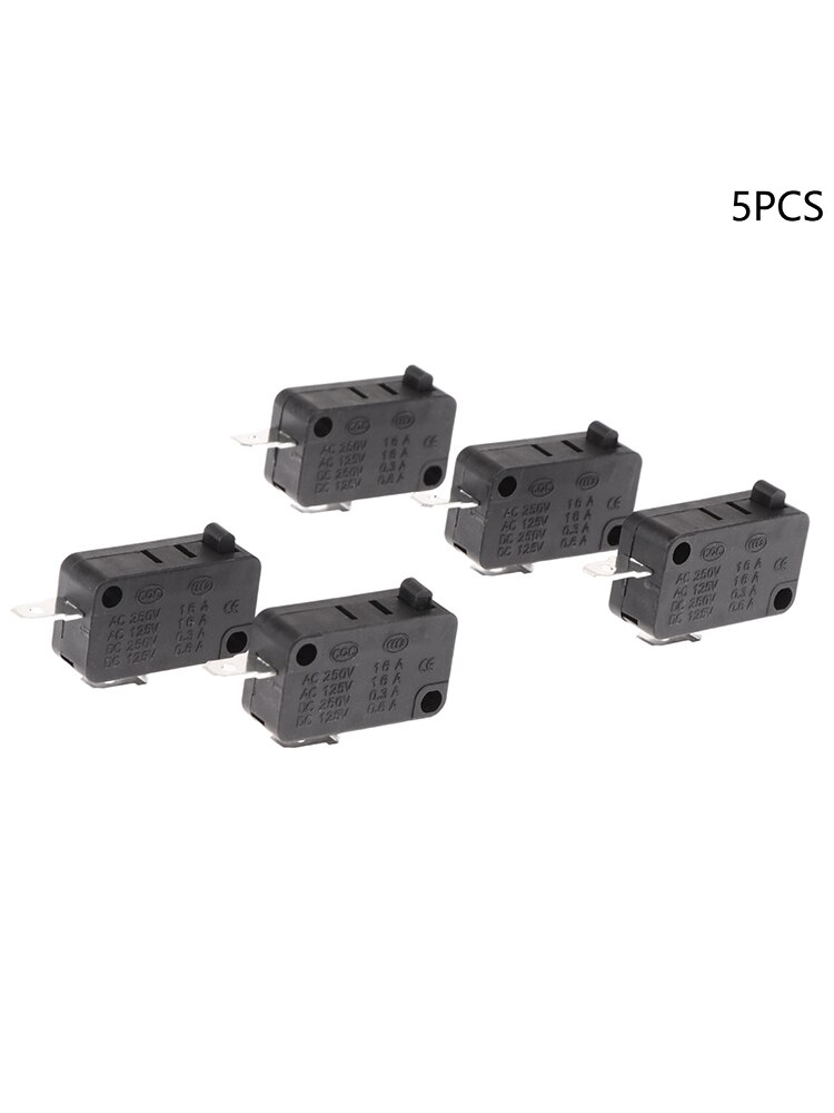 Material: PlasticRated voltage: 250 (V)Rated current: 16 (A)Color: blackPackage Includes:5pcs Microwave Oven Door Micro Switch