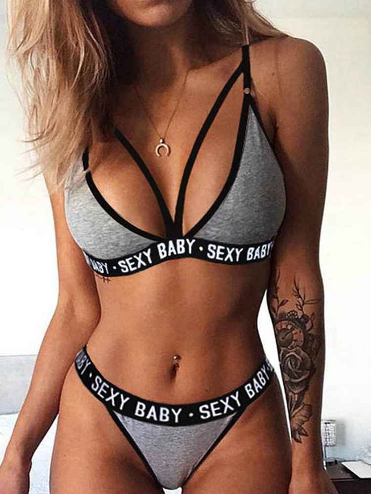 2022New Women's Sexy Sports Underwear Set Girl Sexy Bandage Corset Letter Push Up Bra+Thongs Panties Lingerie Summer Style