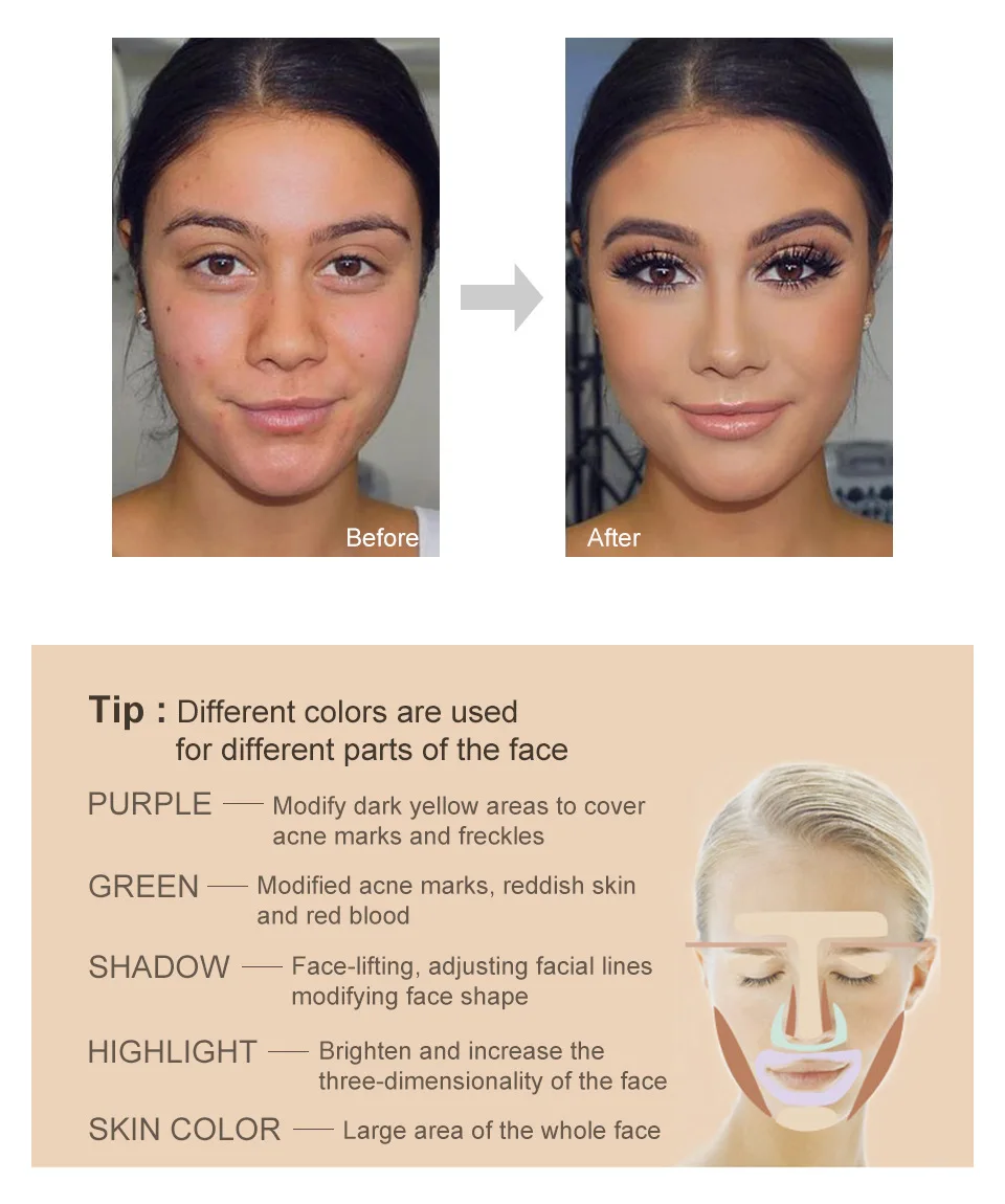3. 14 colors concealer, highlight and shadow to modify the face shape.