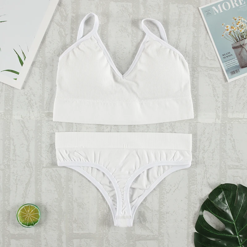 2Pcs Bra Set Underwear Set Women Panties Sexy G-String Seamless Bralette Female Lingerie Soft Tank Crop Top 2023 New