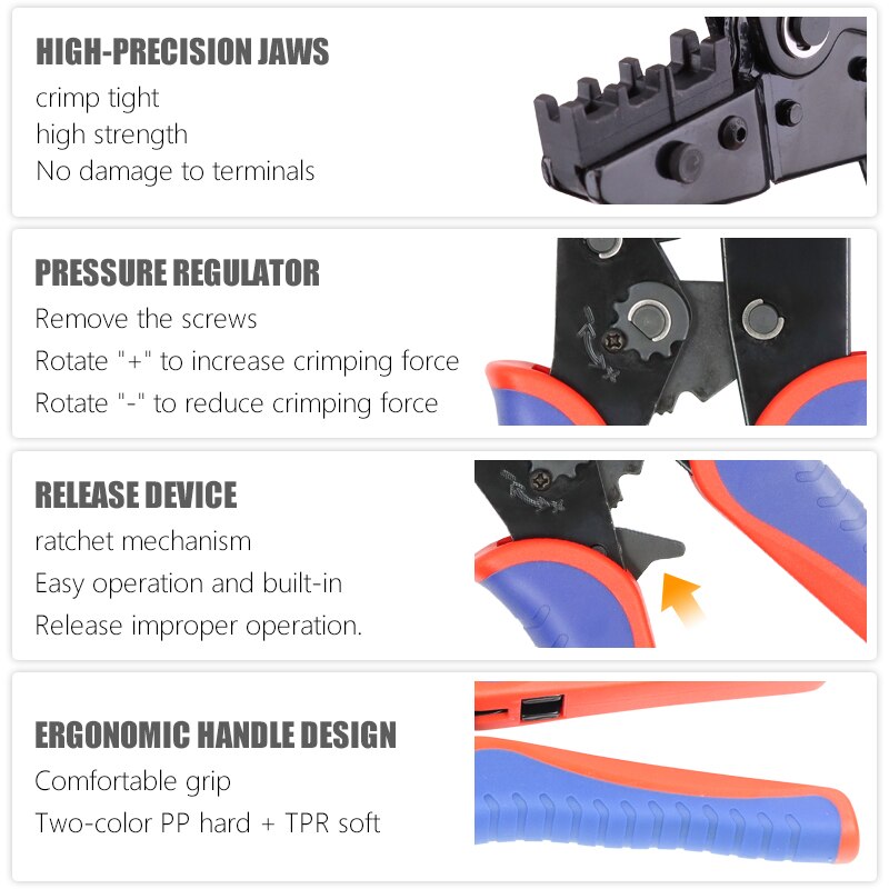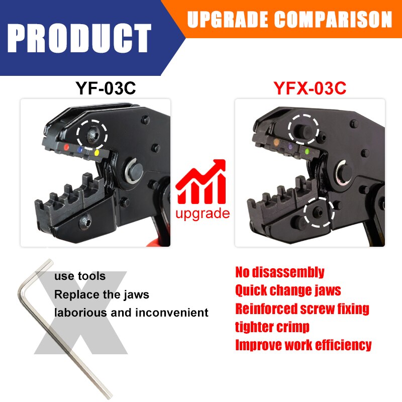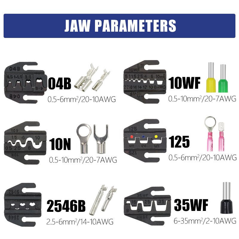 8 In 1 Crimping Tools Sets YFX Quick Replace Jaw for Heat Shrink, Non-Insulated, Open Barrel, Non-Insulated Ferrules Pliers