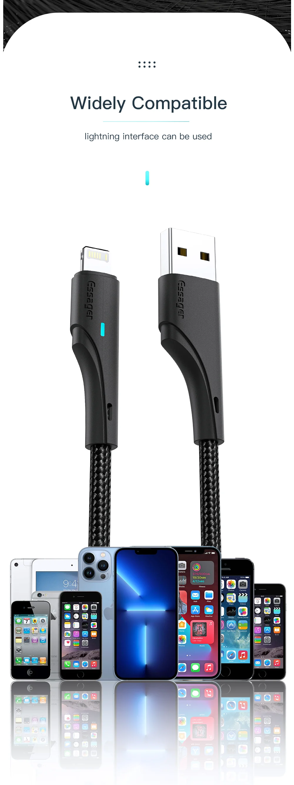 Essager 2M USB Cable For iPhone 13 12 11 Pro Max XR XS 8 7 6s 5 Plus Fast Charging Wire For iPhone Charger Charging Cable Cord