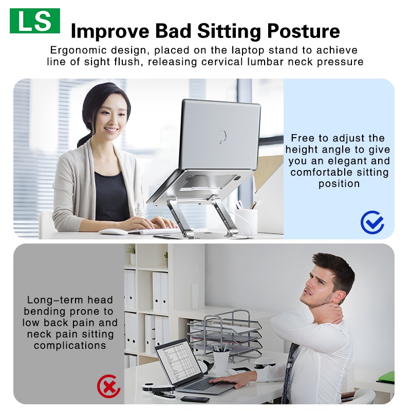 LS LS658 Laptop Stand Adjustable Notebook Stand Compatible with 10-17 Inch Laptop Portable Silver Laptop Holder