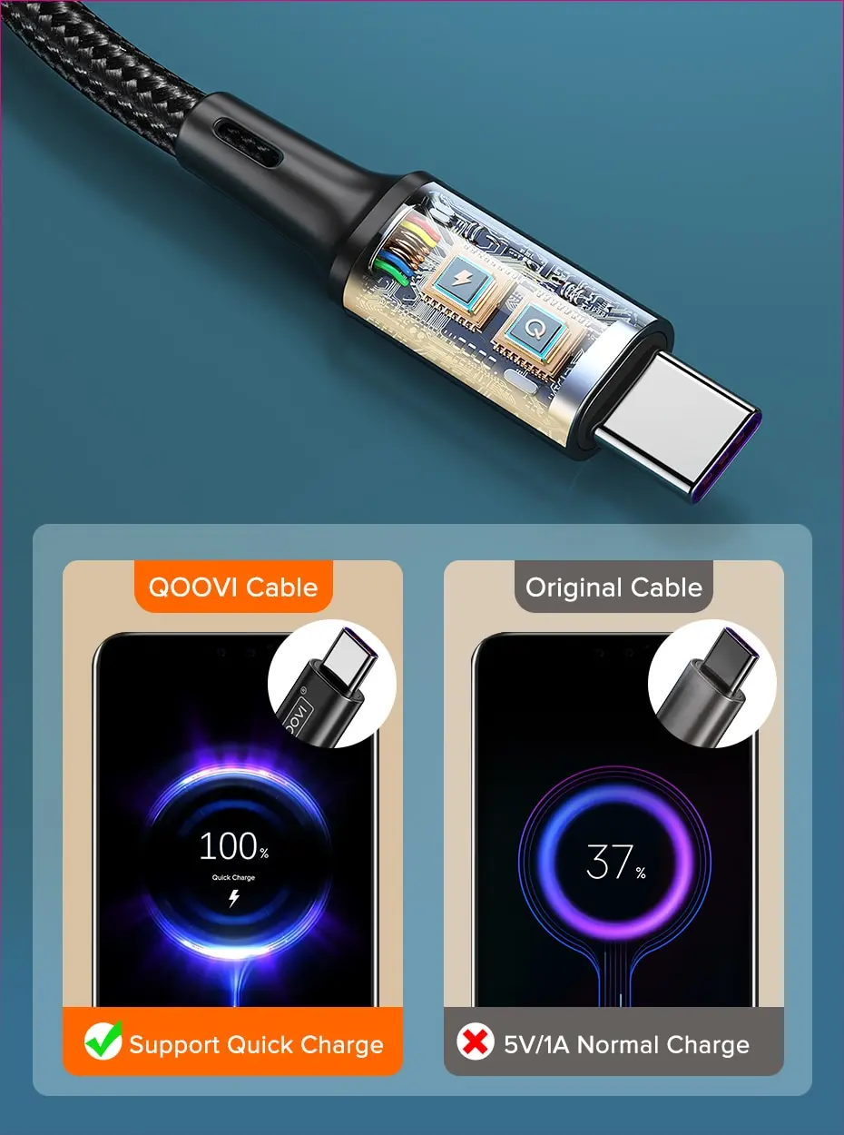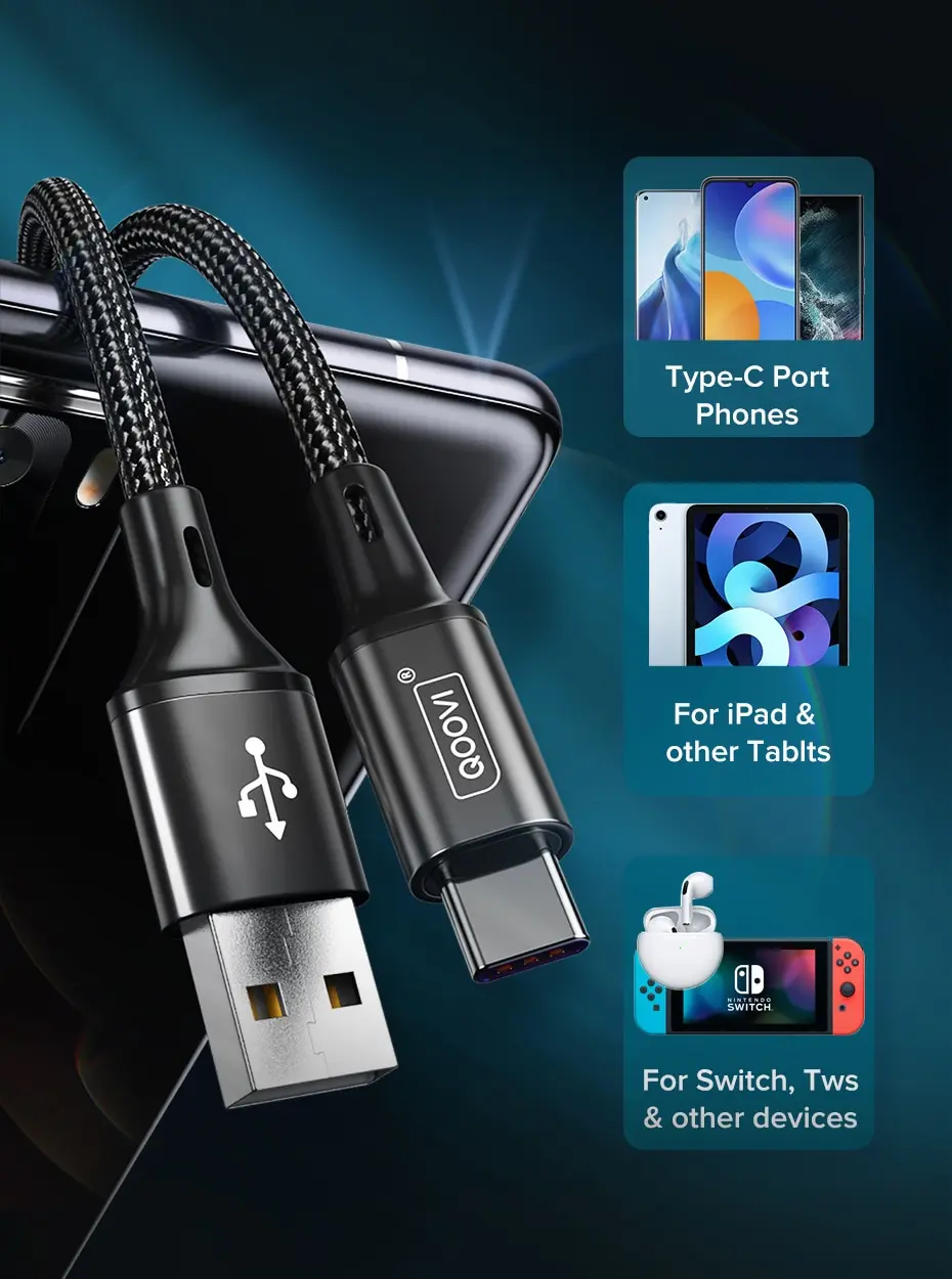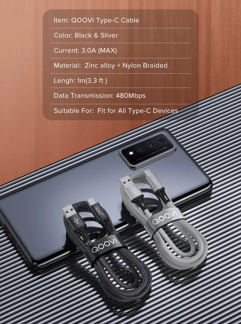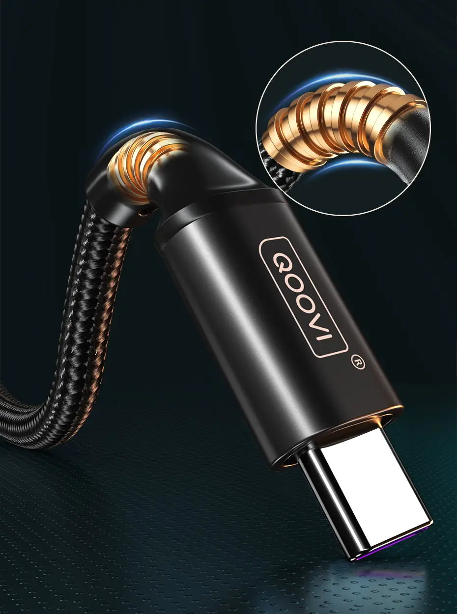 QOOVI 3A USB Type C Cable Fast Charging Cable For Xiaomi Mi11 Samsung S21 A71 Huawei Quick Charge Wire Cord