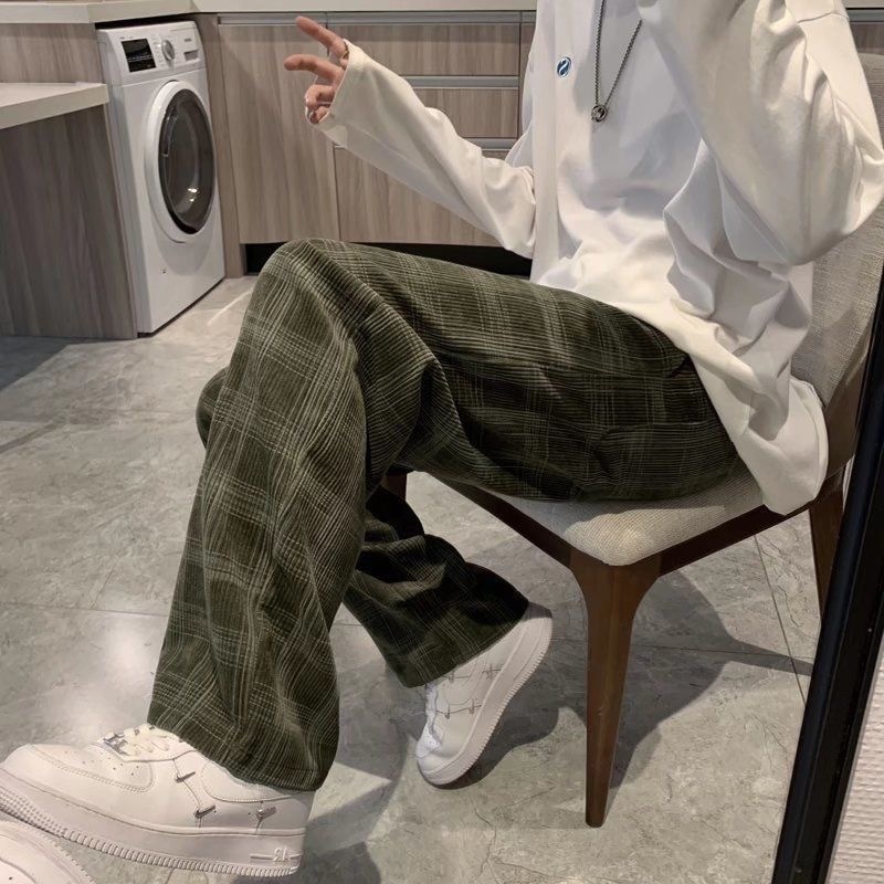 Men Checkered Casual Pants Loose Straight Corduroy Pants Sweatpants Man Fashion Streetwear 2023 Spring New Hip Hop Trousers