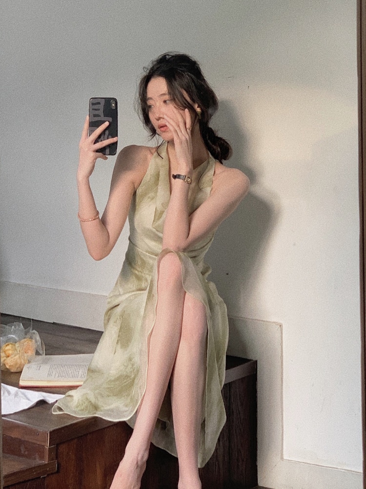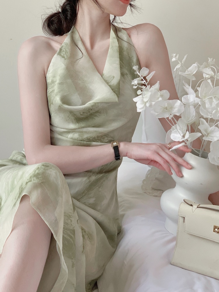 Vintage Sexy Sleeveless Neck-mounted Party Maxi Dresses for Women Halter Spaghetti Strap Folds Midi Dress Elegant Fashion Summer