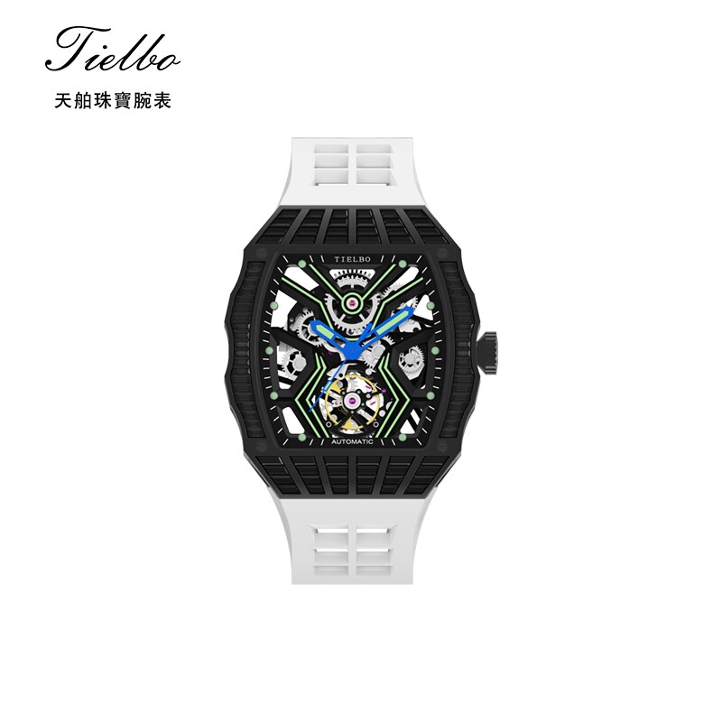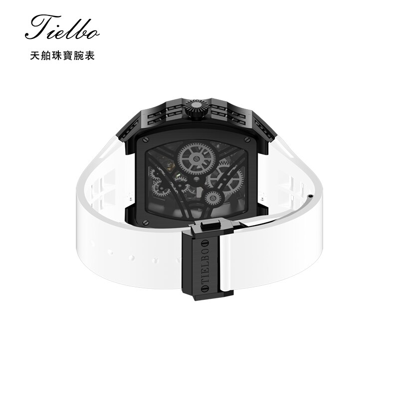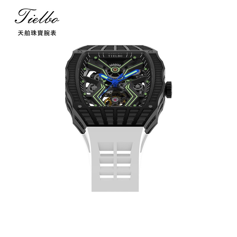 TIELBO Men Automatic Watch Luxury Watches Fashion Tonneau Mechanical Wristwatch Waterproof Sapphire Luminous Punk Rubber