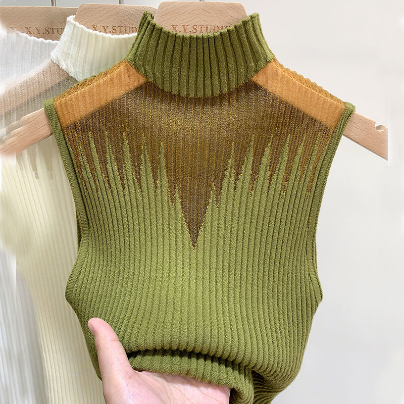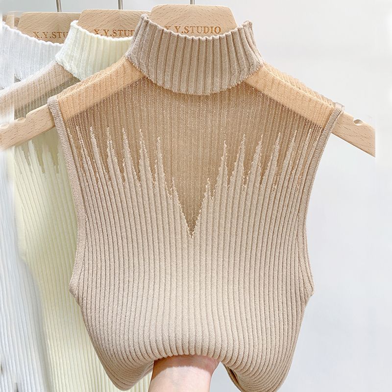 Mesh Hanging Neck Semi-high Neck Knitted Small Vest Female Undershirt Sweater Sleeveless T-shirt Short Tanks Female