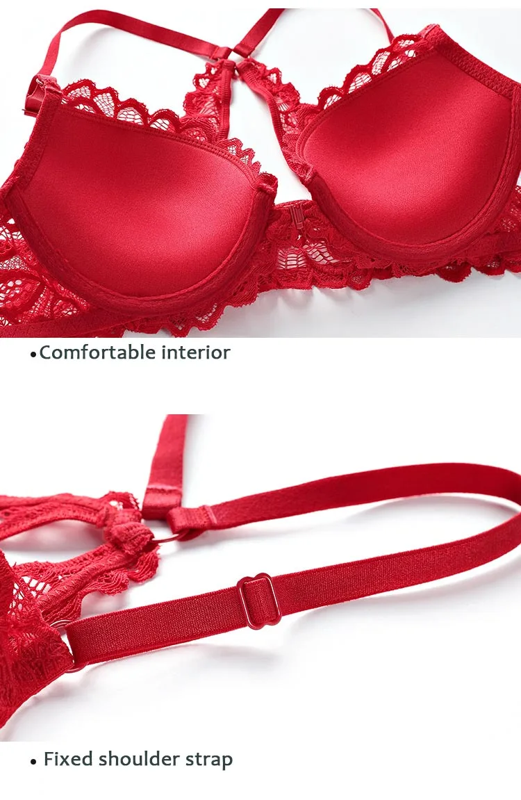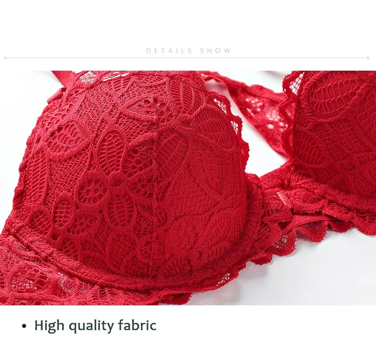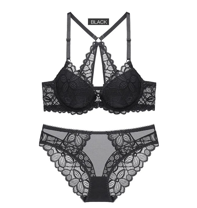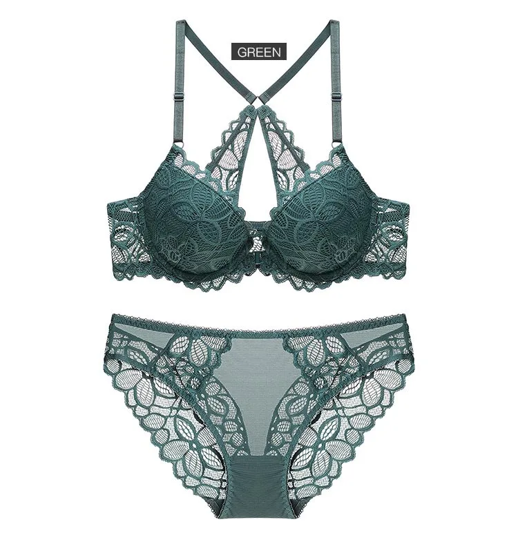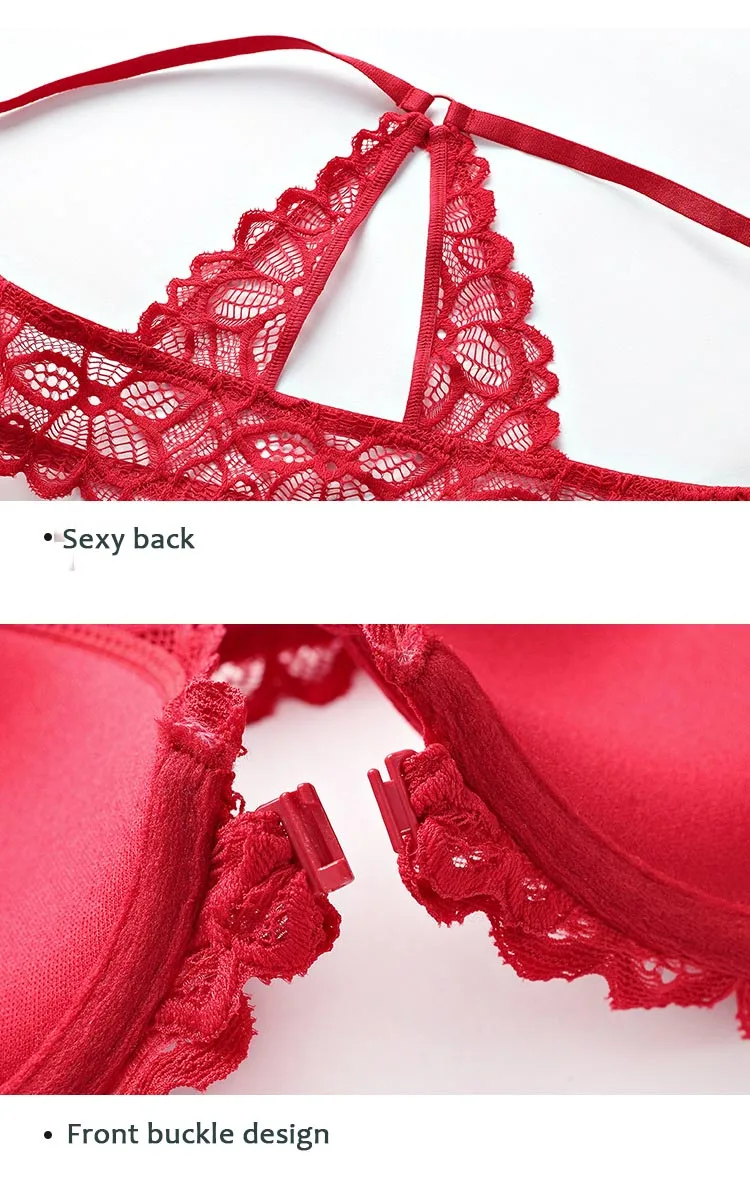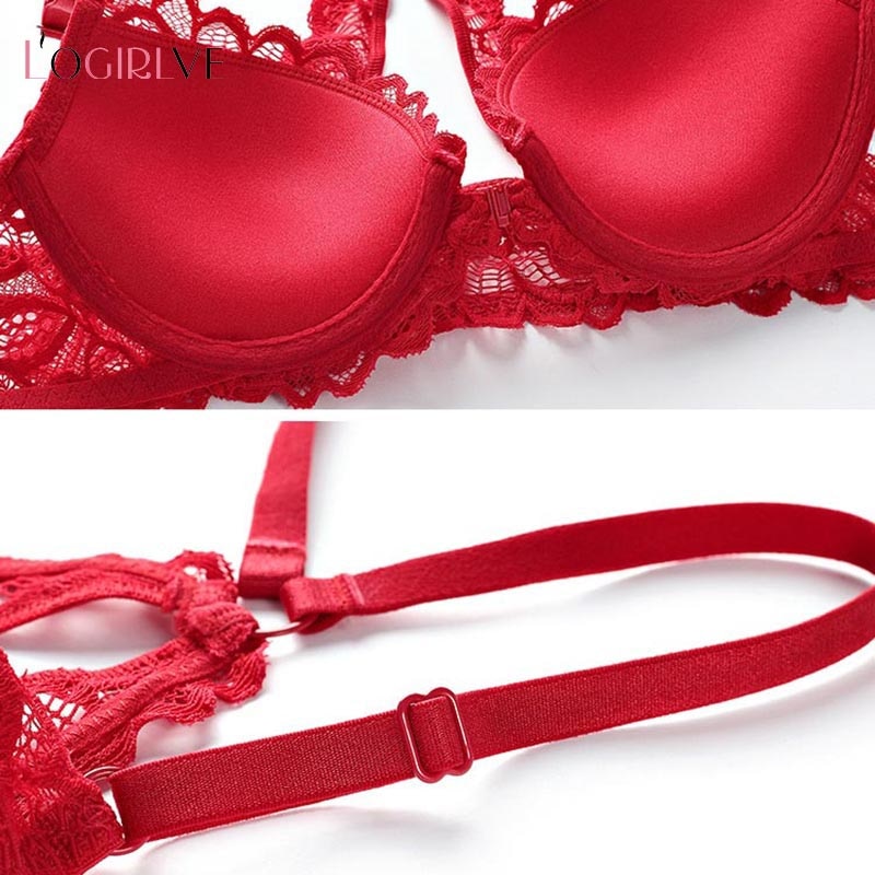 Logirlve Front Closure Bras Underwear Set Sexy Deep V Brassiere Thick Push Up Bra Panties Sets Embroidery Women Lingerie Set