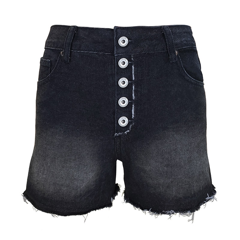 Summer 2023 Women's Clothing Hot Girls Pants Streetwear High Waist Denim Shorts Casual Multi Button Tassel Loose Blue/Black Jean
