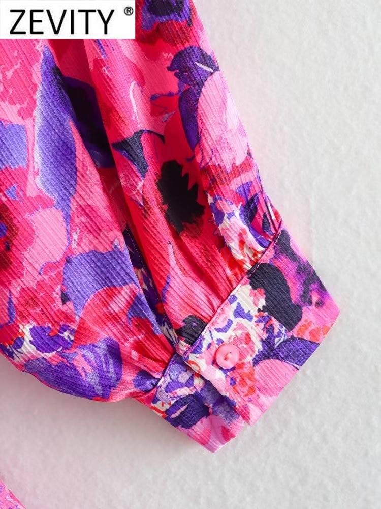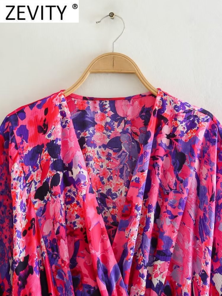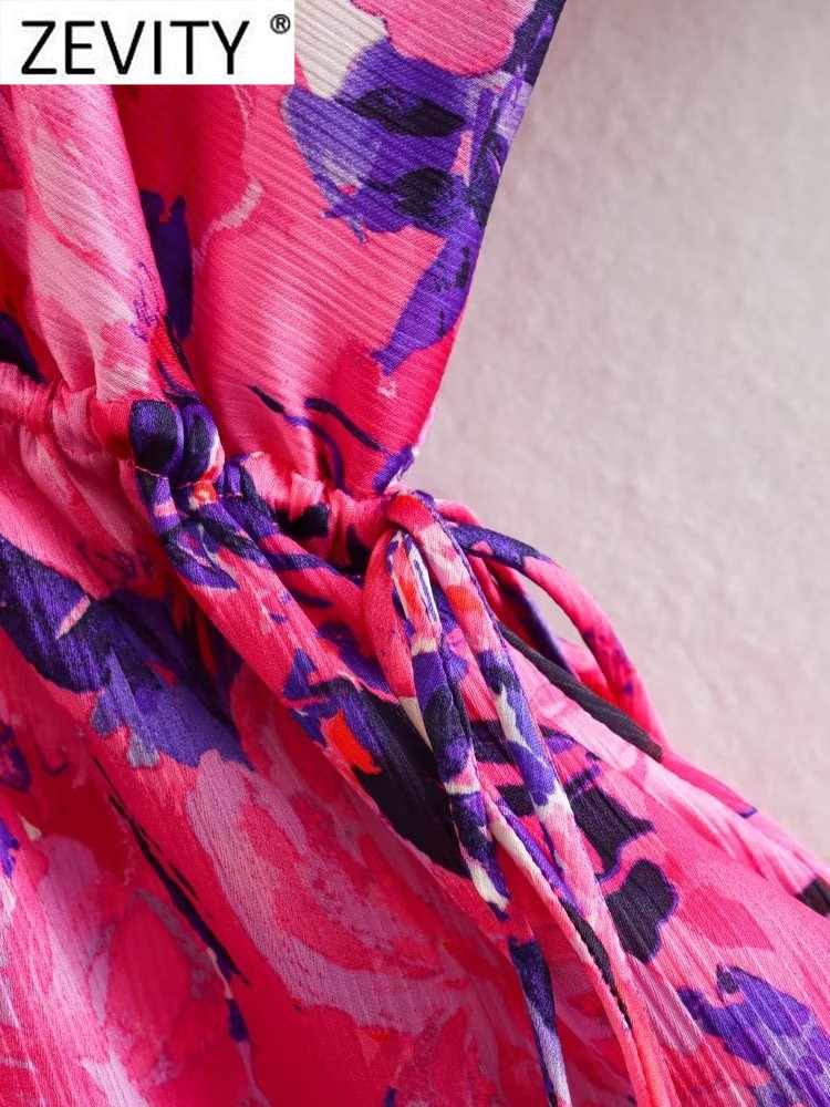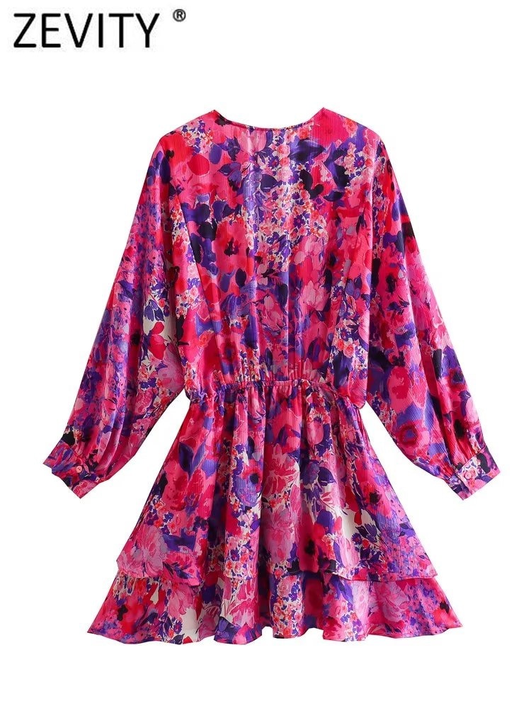 Zevity Women Fashion V Neck Floral Print Double Layer Ruffles A Line Mini Shirt Dress Female Chic V Neck Lace Up Vestidos DS3765