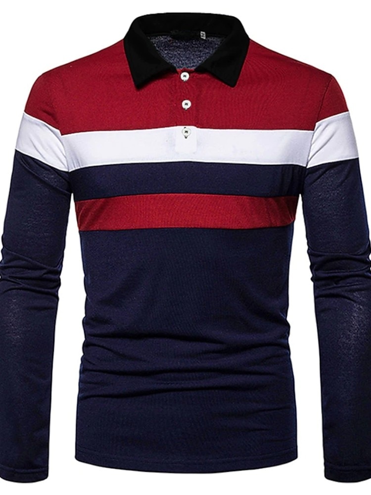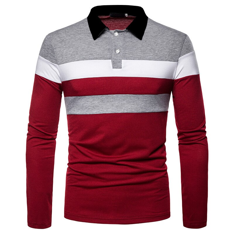 New Fashion Men Polo Shirts Zipper Closure Patchwork Turn-down Collar Long Sleeve Pullover Sweatshirt S-3XL
