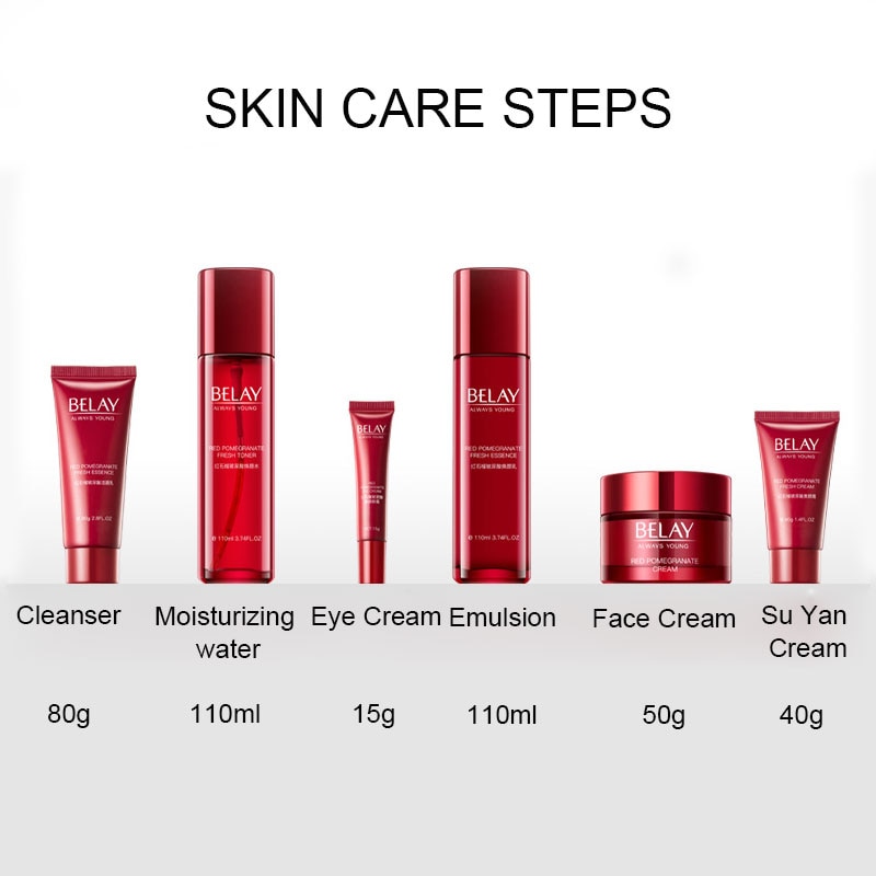 Skin Care Set Moisturizing Nourish Brighten Oil Control Beauty Red Pomegranate Hyaluronic Acid Six-piece Set Facial Skin Care