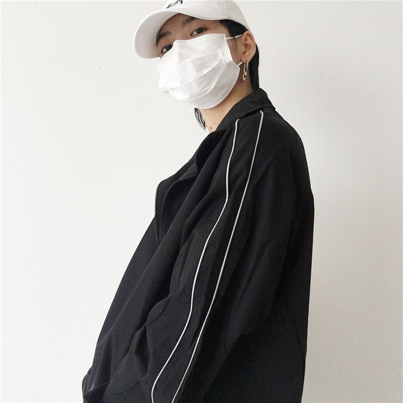 Y2K Women Techwaer Korean Streetwear Black Jacket Zipper Windbreaker Sweatshirt Oversizer Outwear Trench Coats Tops Alt Clothes