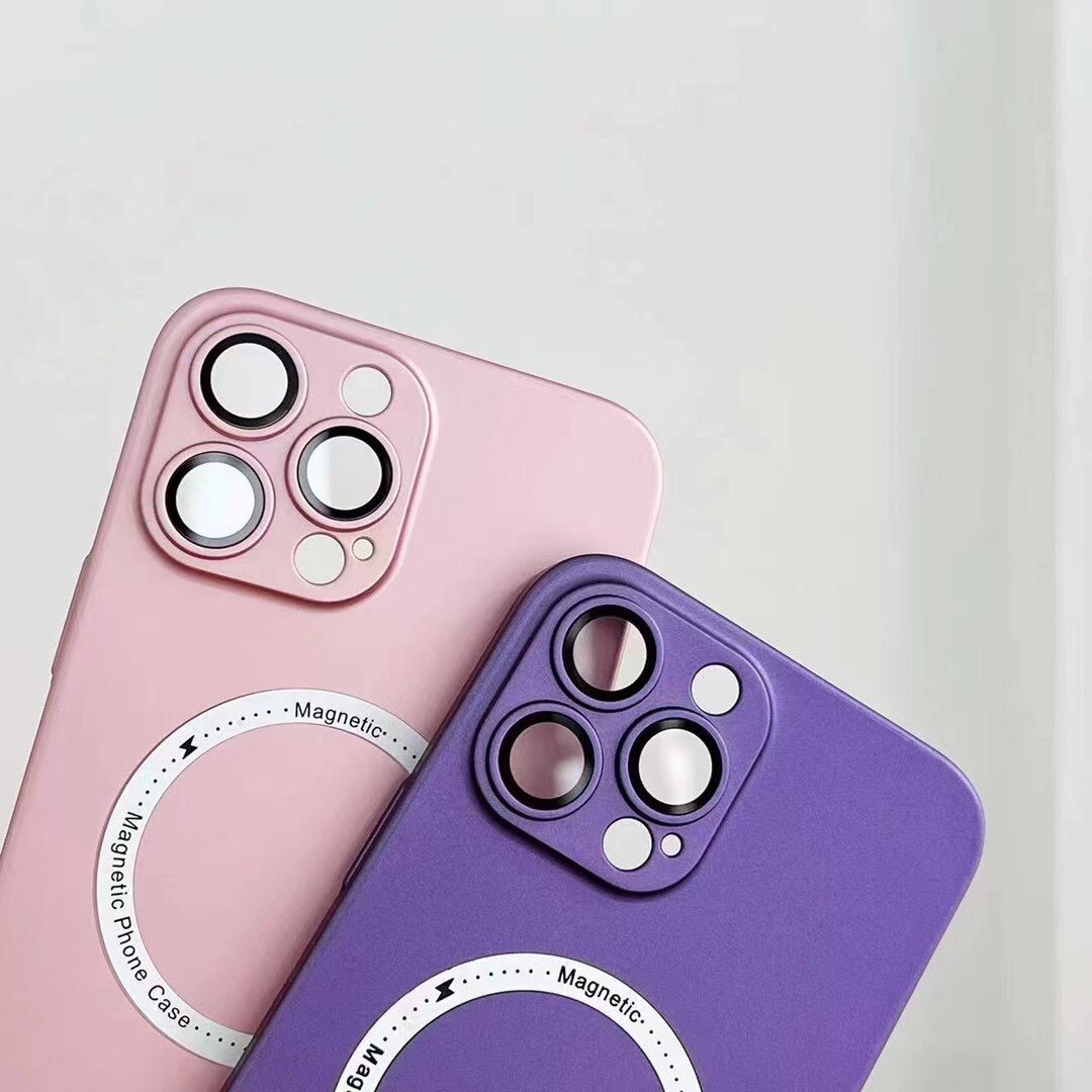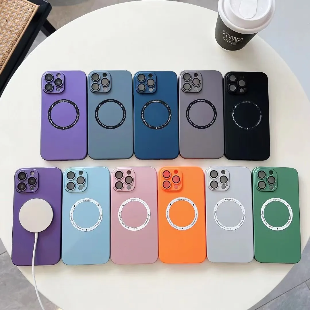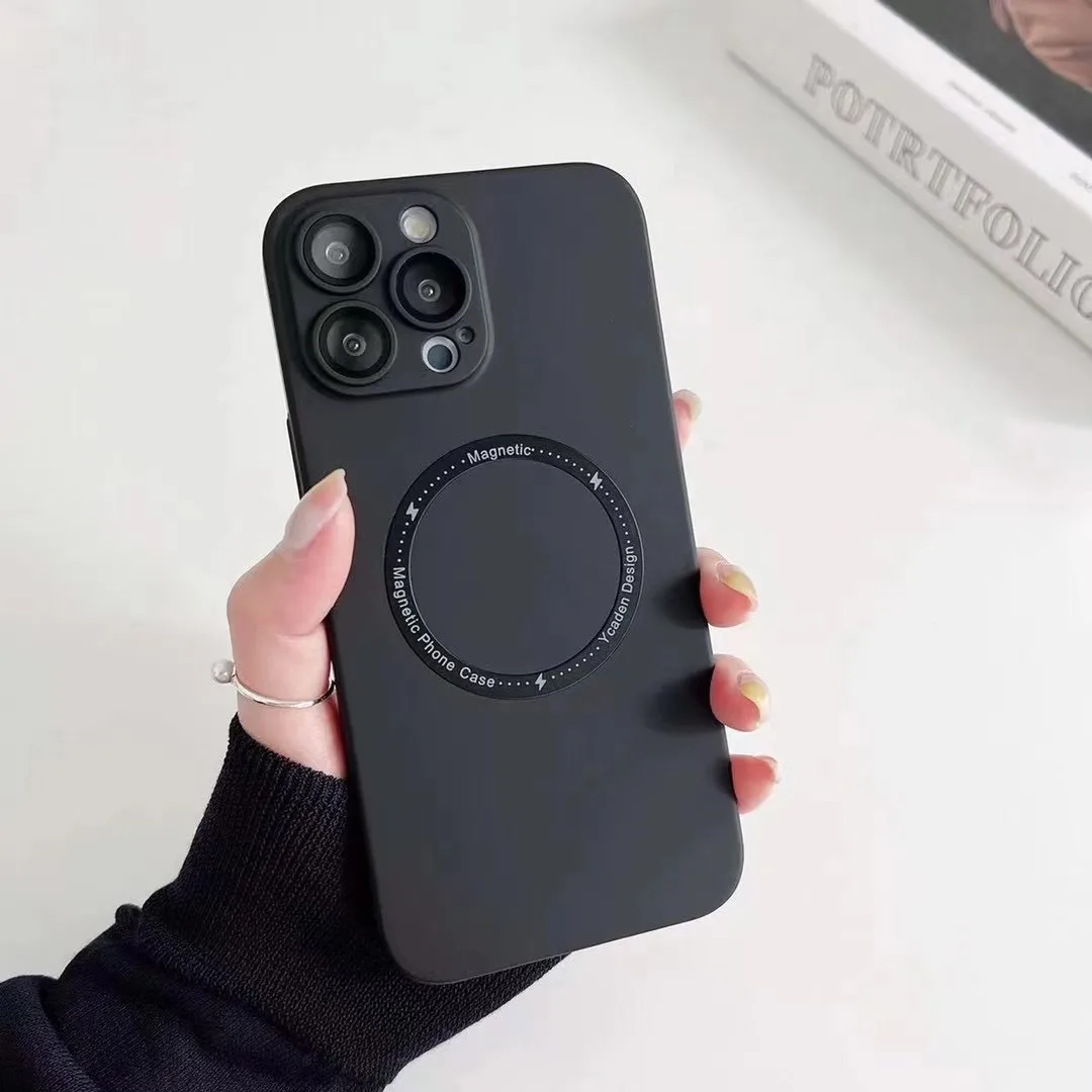 For Magsafe Magnetic Wireless Charger Case for iPhone 14 13 12 11 Pro Max Plus Luxury Matte Silicone Glass Lens Shockproof Cover