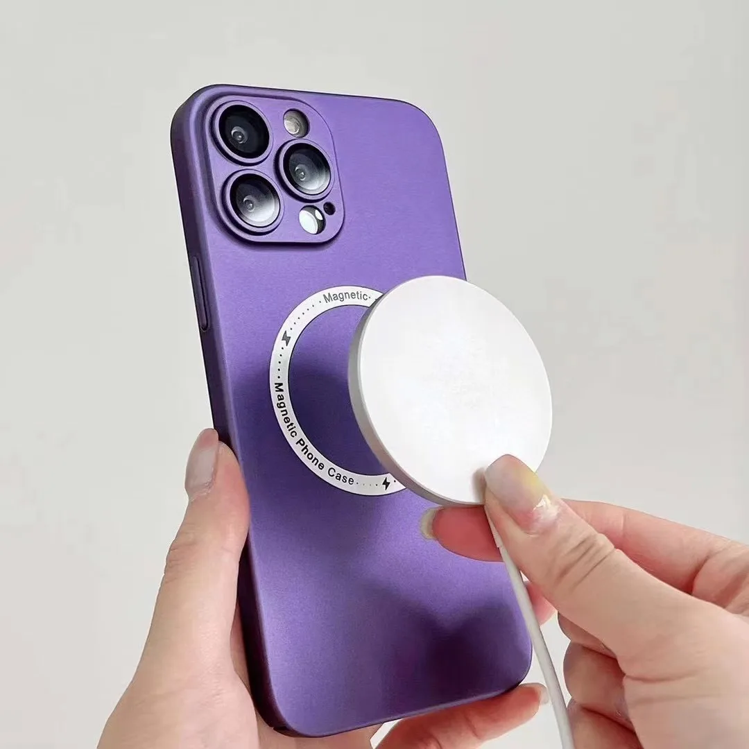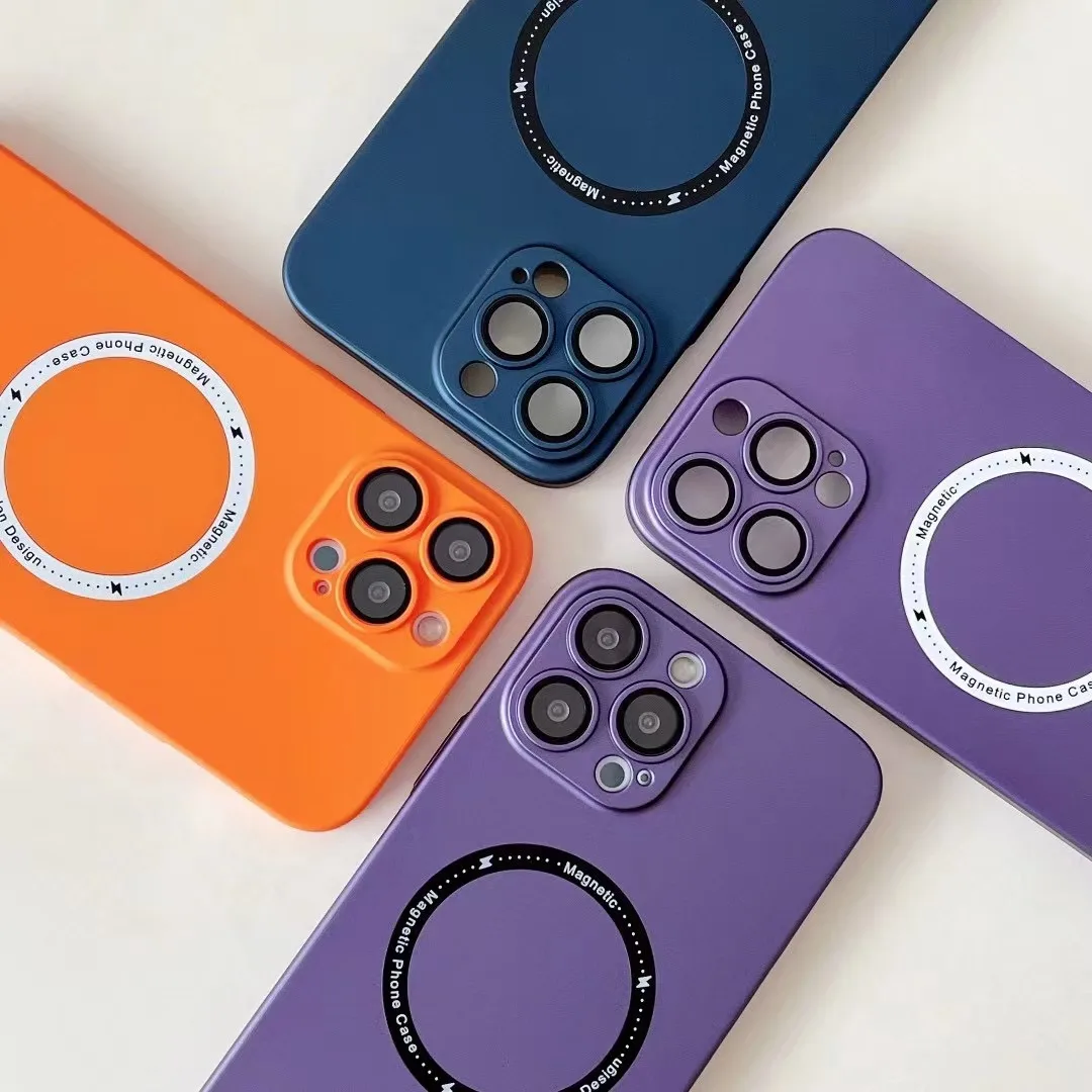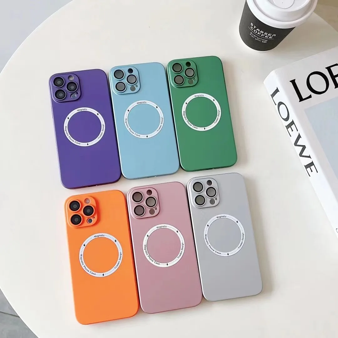 For Magsafe Magnetic Wireless Charger Case for iPhone 14 13 12 11 Pro Max Plus Luxury Matte Silicone Glass Lens Shockproof Cover