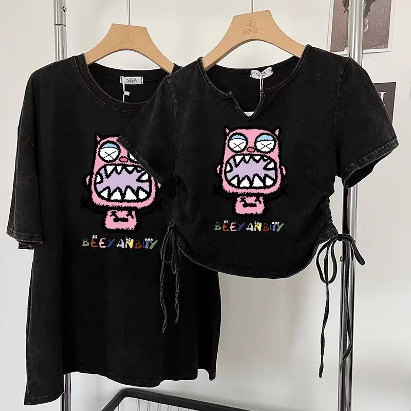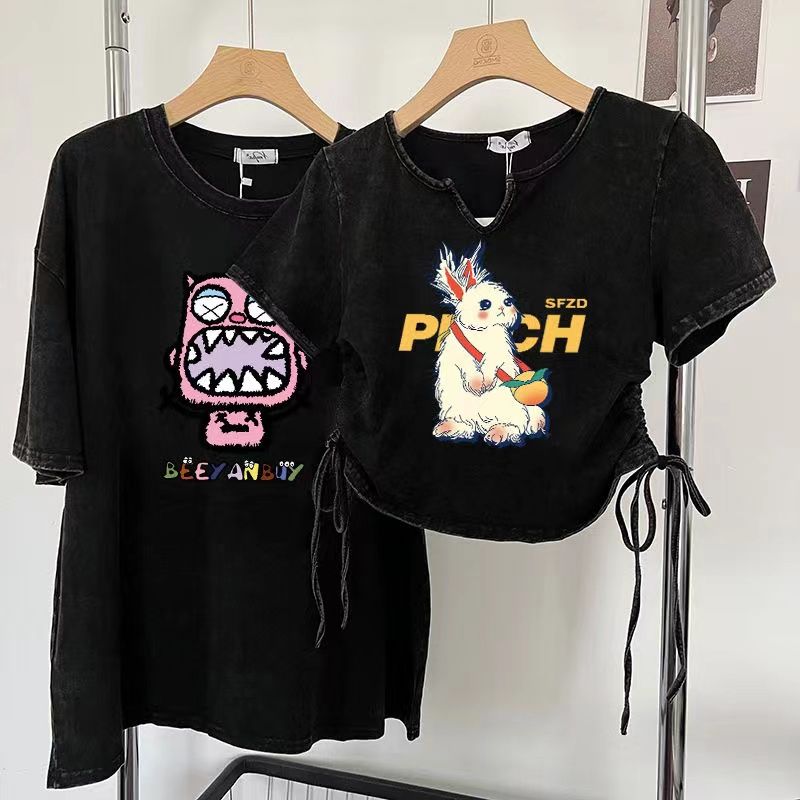 Goth Graphic Print Graphic T Shirts Clothing Harajuku Vintage Street Shirts for Women Washed and Aged Y2k Top T Shirt Women