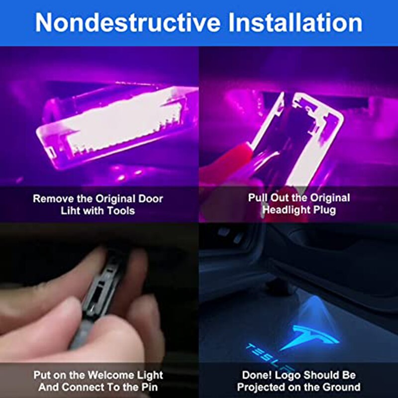 1.The Tesla car door light has left and right different. Please check again before installation,
