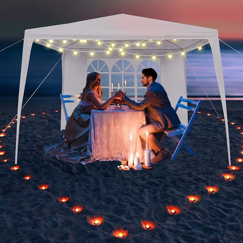 LARGE SPACE: 10x10 feet with 3 sidewalls White Wedding Party Tent provides 100 square feet of shade coverage, 6 to 10 people at the same time for any outdoor events.