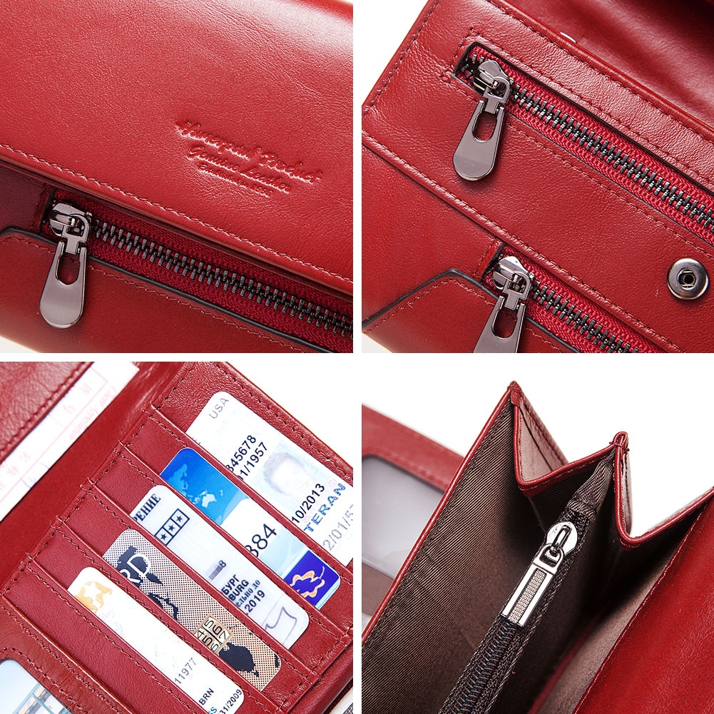 Fashion Women Wallet Genuine Leather Coin Purse for Ladies Luxury Design Trifold RFID Clutch Wallets with Phone Bags Card Holder
