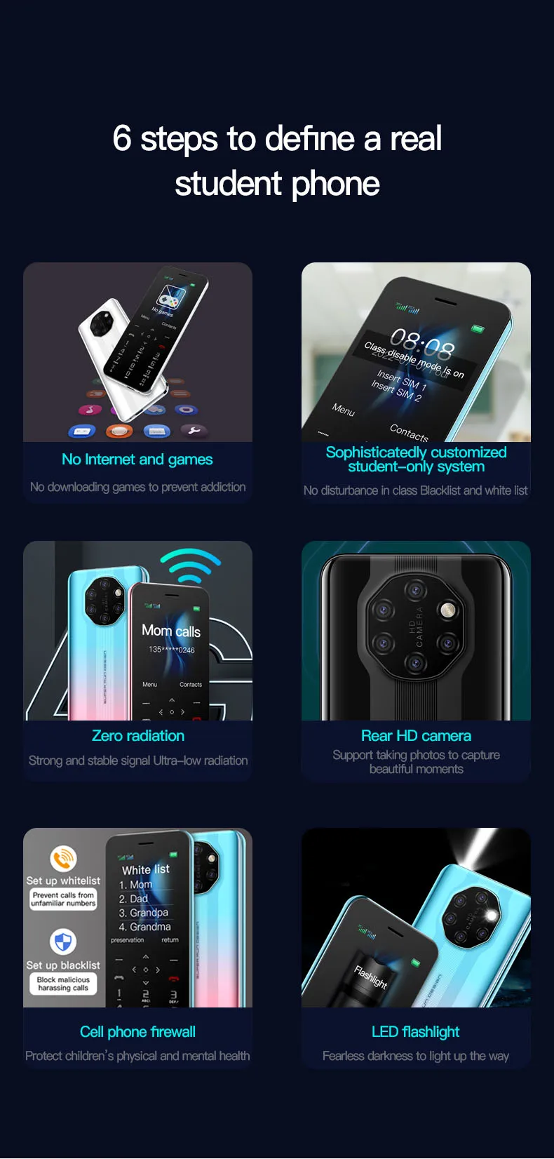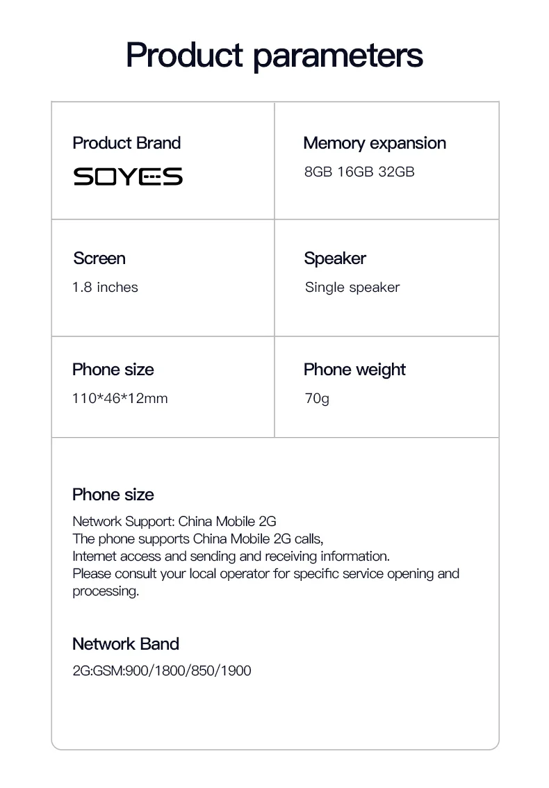 SOYES S10W Mini Mobile Phone GSM 2G Network Dual SIM Cards 1.77" Display 1000mAh Rear Camera Vibration MP3 FM Student Card Cell