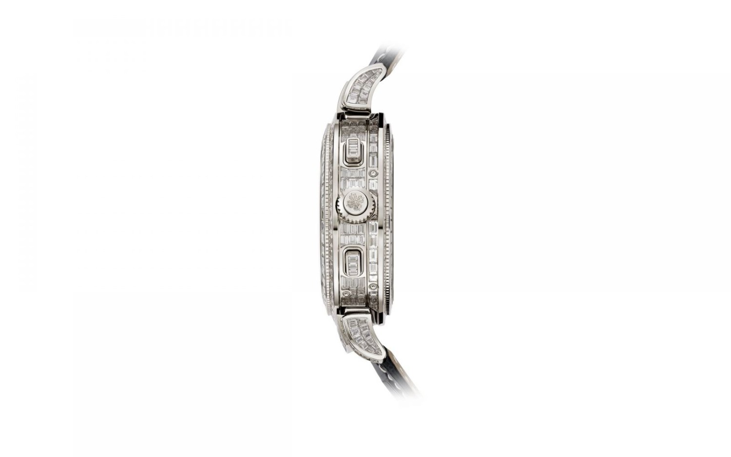Chuyển động cơ học bằng tay. Caliber 300 GS AL 36‑750 QIS FUS IRM. Chuông của Patek Philippe Grandmaster. Đồng hồ đeo tay có thể đảo ngược hai mặt. Sonnerie lớn và nhỏ. Bộ lặp phút với tiếng cồng cổ điển. Hiển thị chế độ tấn công (S G P). Báo động với thời gian đình công. Chỉ báo bật/tắt báo động. Bộ lặp ngày. Chỉ báo dự trữ năng lượng của chuyển động và đòn tấn công. Chỉ báo cách ly đình công. Múi giờ thứ hai. Chỉ báo ngày/đêm của múi giờ thứ hai. Lịch vạn niên tức thời. Thứ, ngày (trên cả hai mặt số), tháng, chu kỳ năm nhuận bằng kim. Hiển thị năm chữ số trong một khẩu độ. Các giai đoạn của mặt trăng. Mặt số phụ 24 giờ và phút. Chỉ báo vị trí núm vặn (R A H).